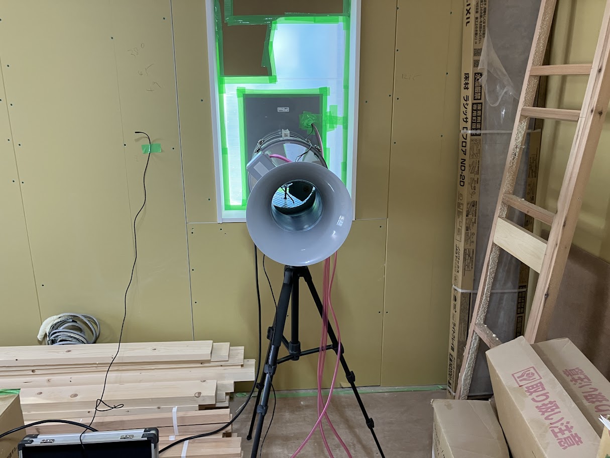 気密測定は完成後だけでなく、断熱材施工後の中間測定も推奨されています。
