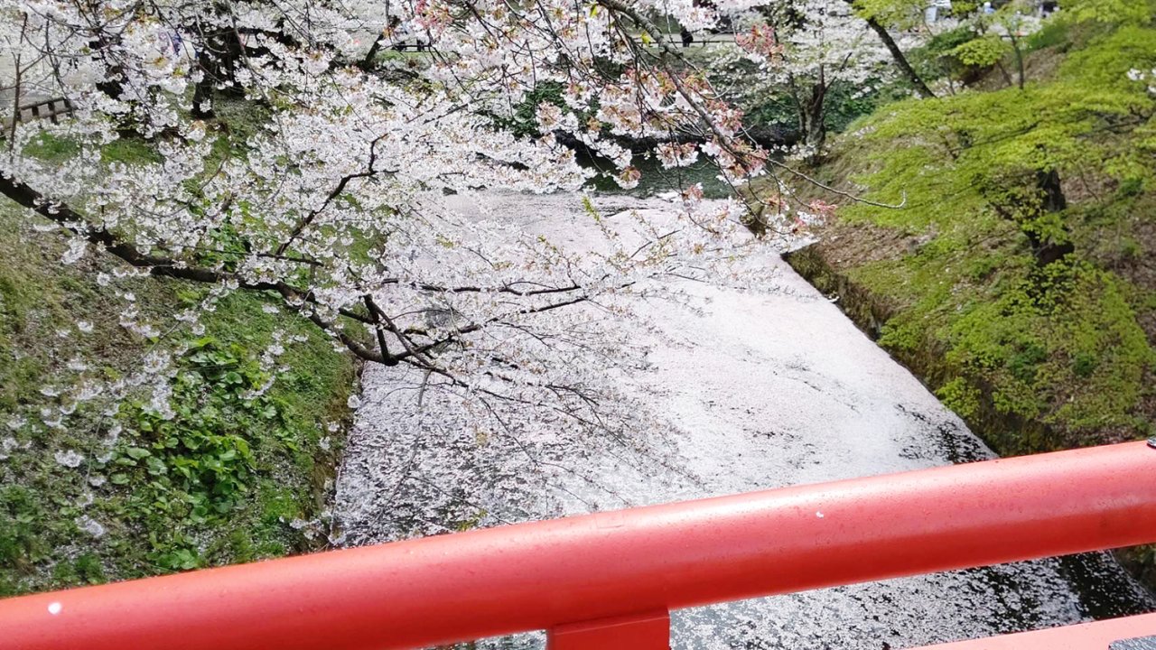 遊覧船に乗ったのですが、水面に桜の花びらが散った「花筏」を見ることができました。