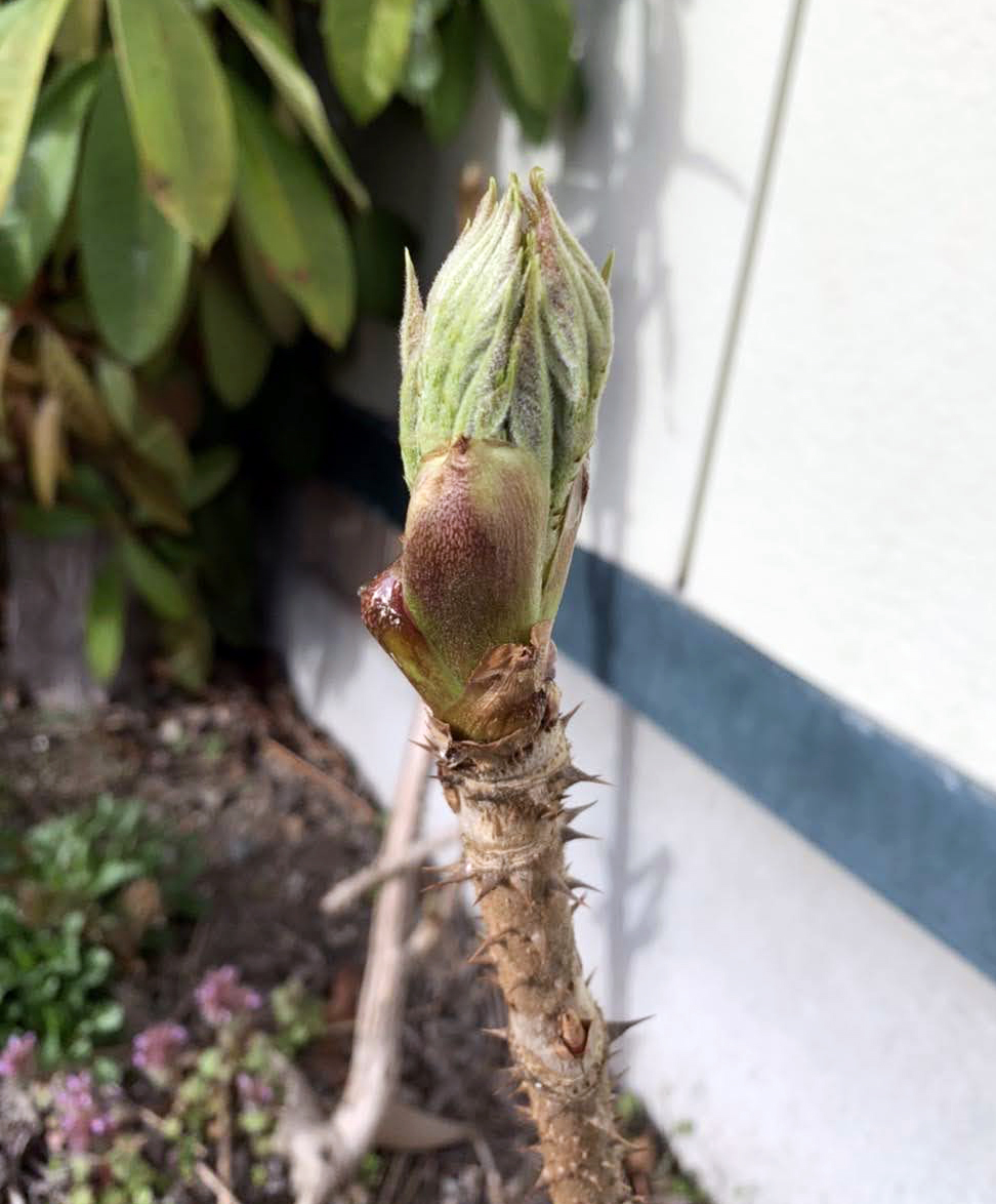 数年前とある神宮寺の邸宅の庭先で育っていたタラの芽の枝木を譲ってもらい、自宅に植えてからようやく初収穫を迎えました。