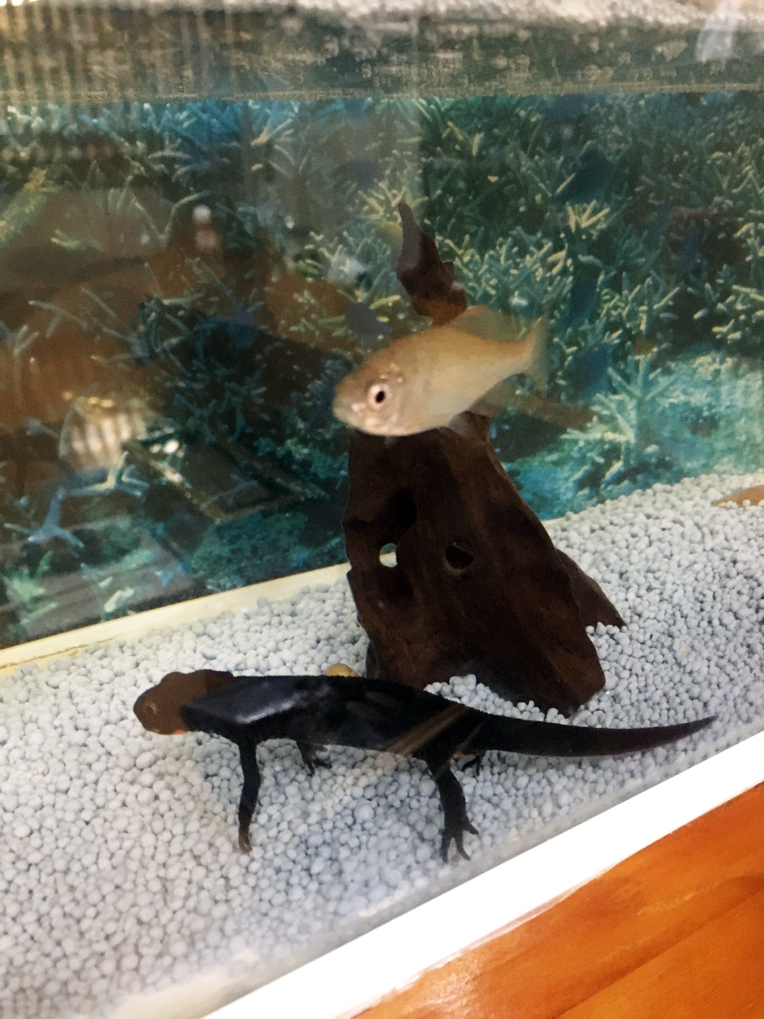 さて、タイトルにあります私の最近の癒しが、よく行く居酒屋さんに居るイモリとメダカです!