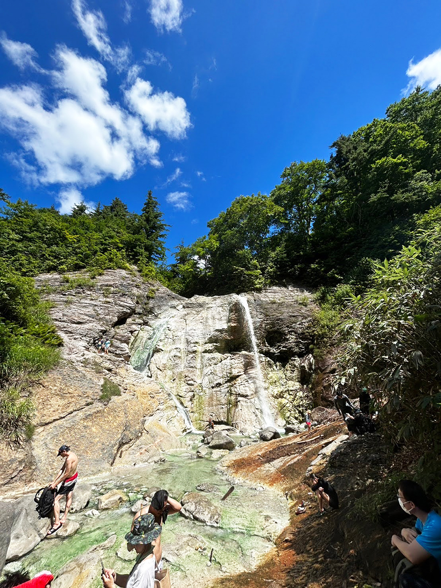 ずっと家にいる日が続いたのでお盆休みの初日天気よかったので、湯沢の川原毛地獄の湯滝に私含めて体力確認の為行ってきました。