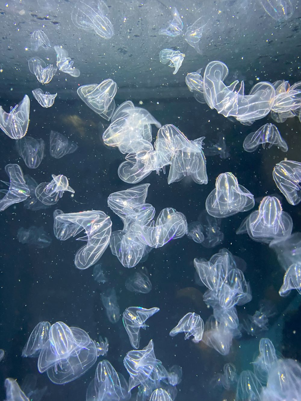 まずは、加茂水族館へ。以前、GWに行ったときは人だらけで、ほとんどクラゲを見られずに帰ってきましたが、今回はゆっくりとたくさんのクラゲを見ることが出来ました。