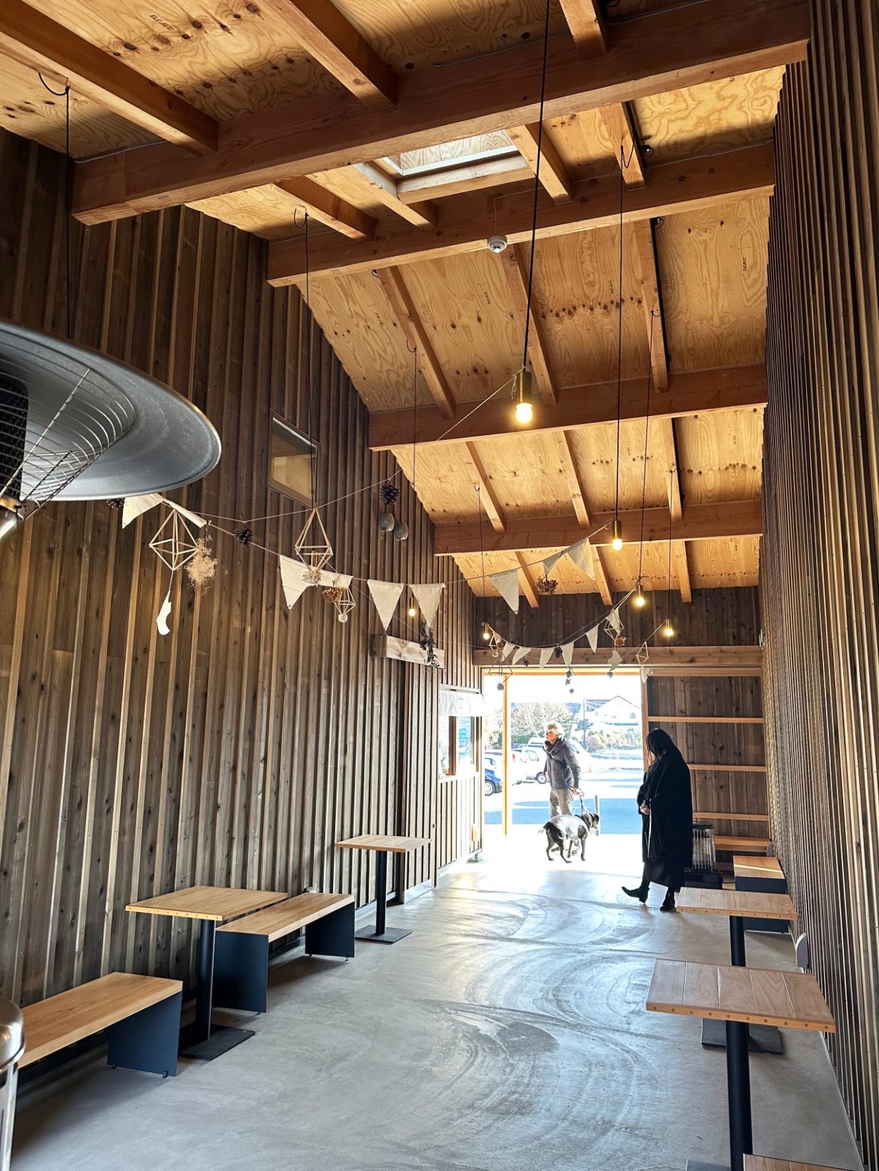 飲食店やサロン、コーヒーショップなどがあり、外装も内装も杉の木を使っているのがなんとも味があります。
