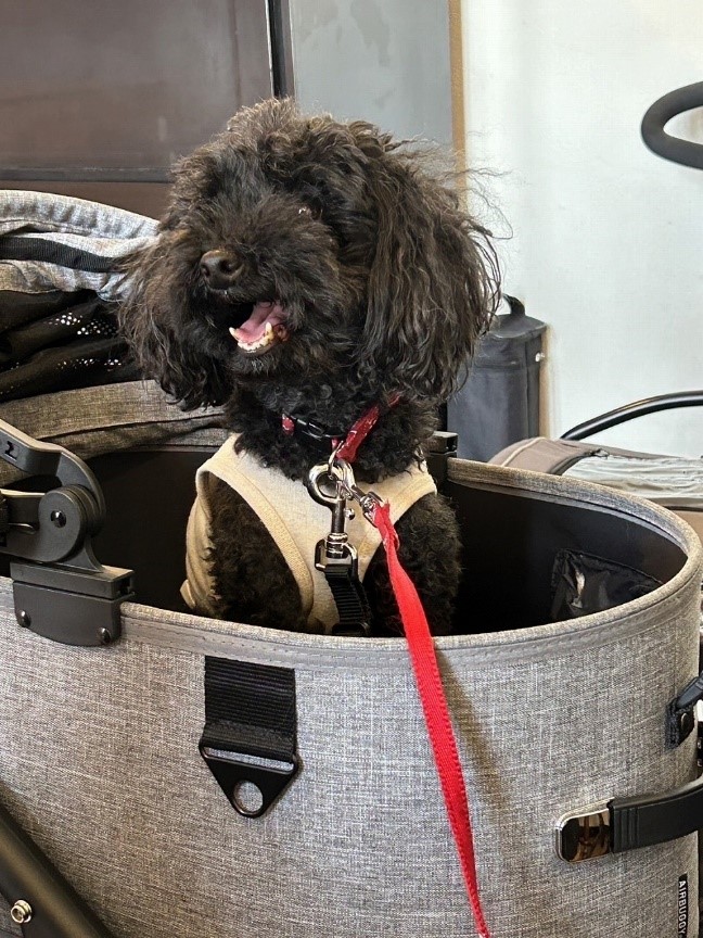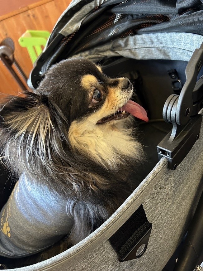 食べさせる前犬用のベビーカーのようなのに乗せていたのですが、
