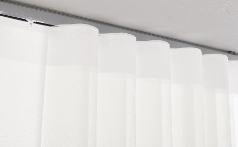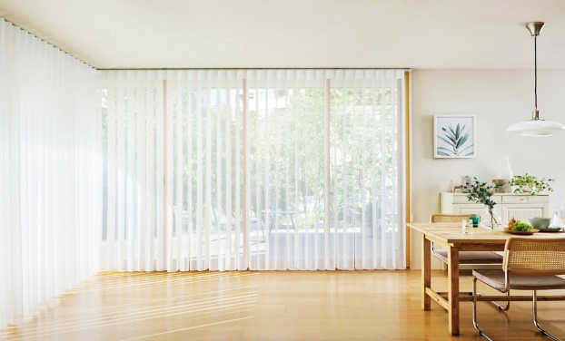 スタイリッシュなバーチカルブラインドと、柔らかい風合いのカーテンを組み合わせたような画期的な商品です。