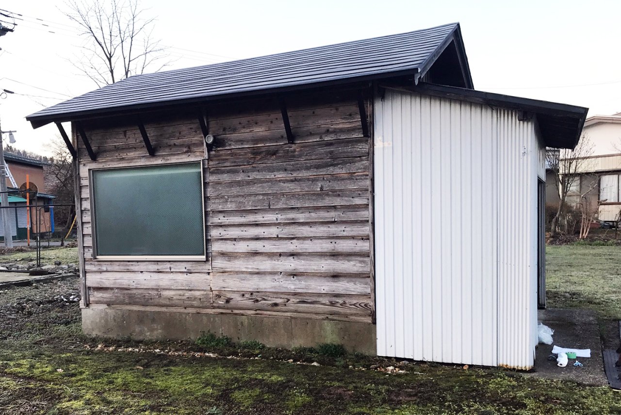 小屋の周りをきれいにかたずけして、脚立が立つかを確認。