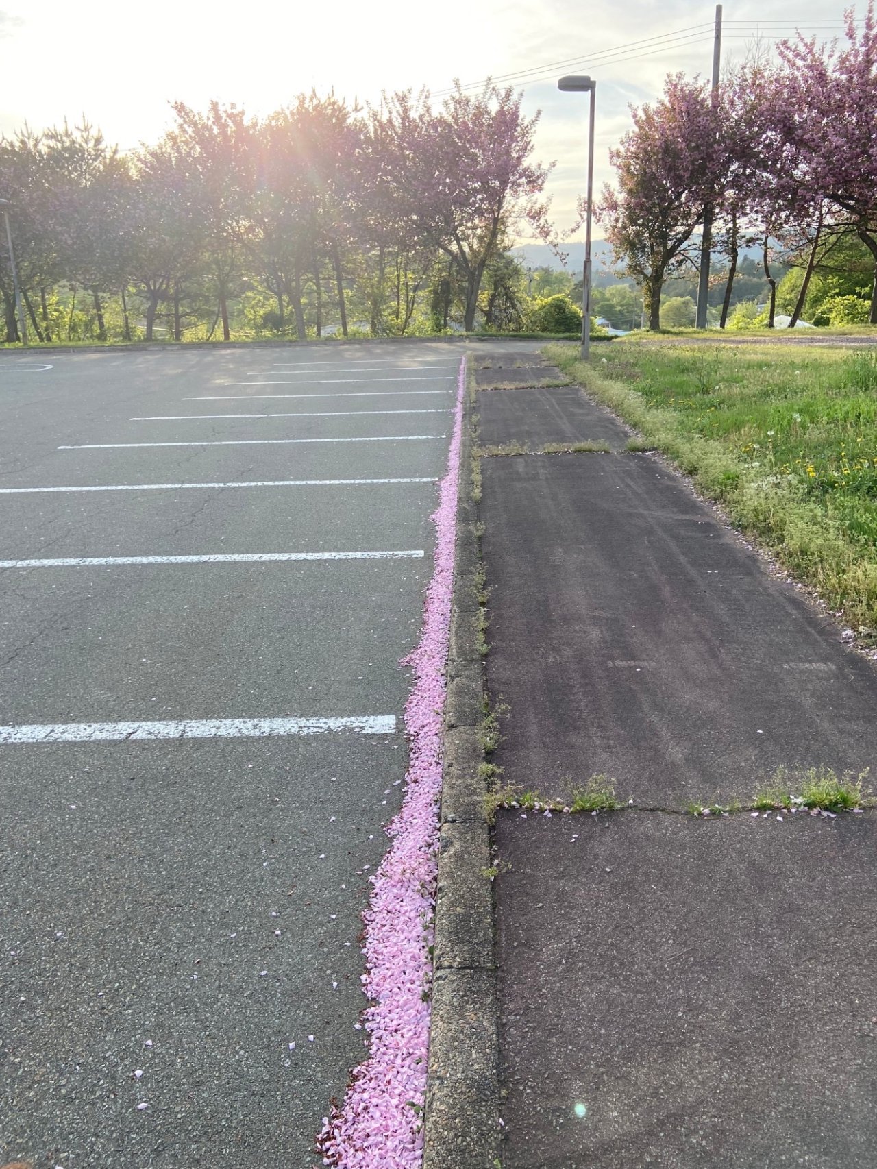 だいぶ桜が散り始め、地面に花びらでピンクのラインできておりました。