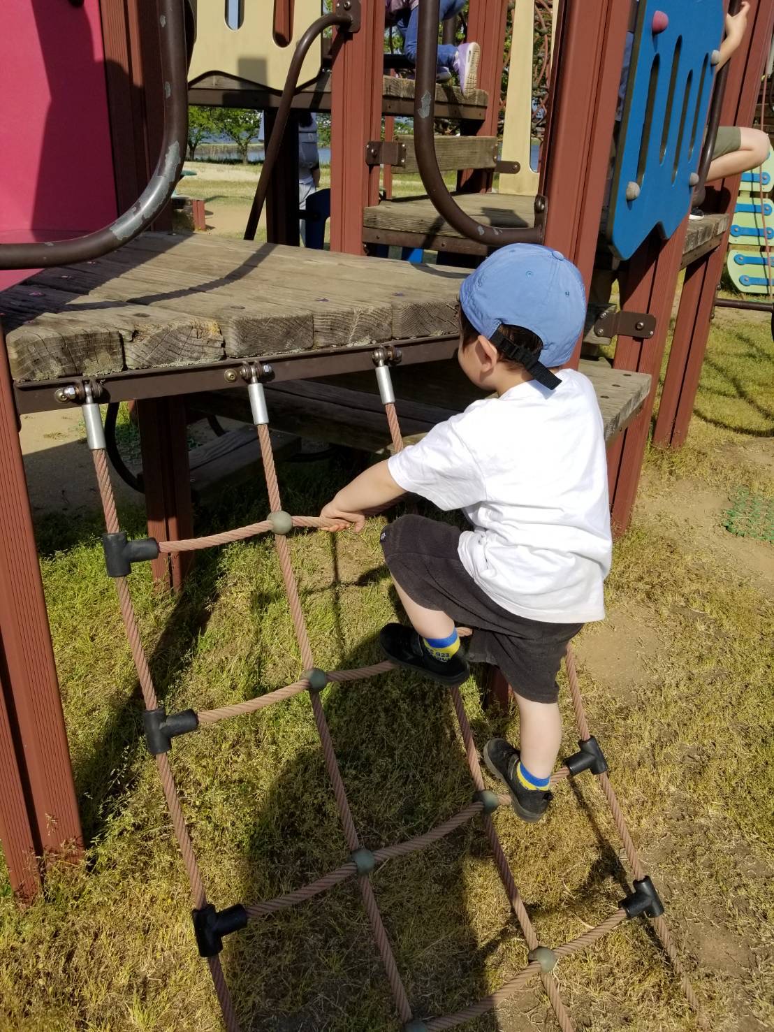 今回遊ばせてみると一人で補助なしで遊具に昇り降りして、