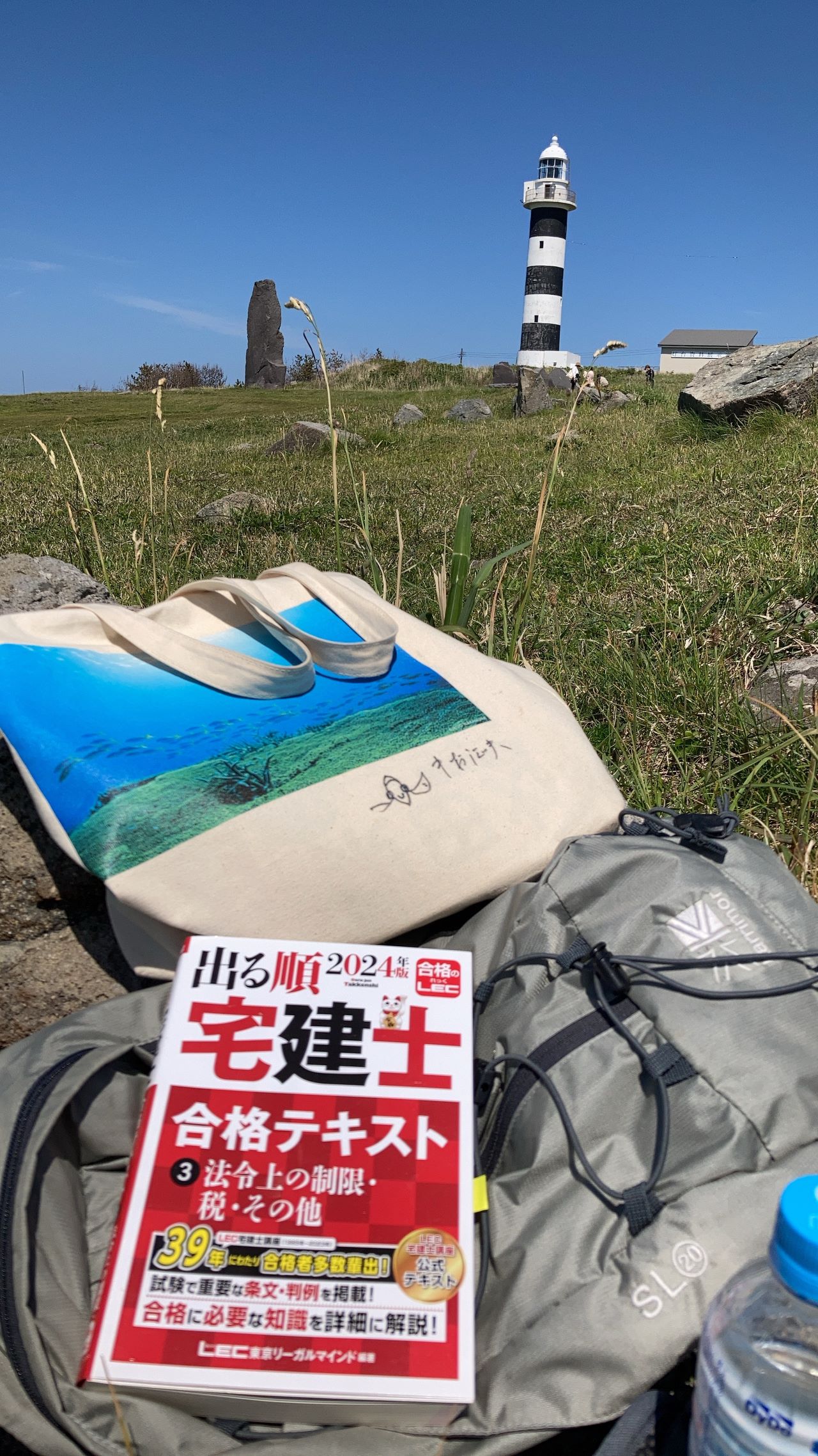 海と灯台を眺めながら日向ぼっこしつつ宅建のテキストなんて読んじゃったりして。(笑)