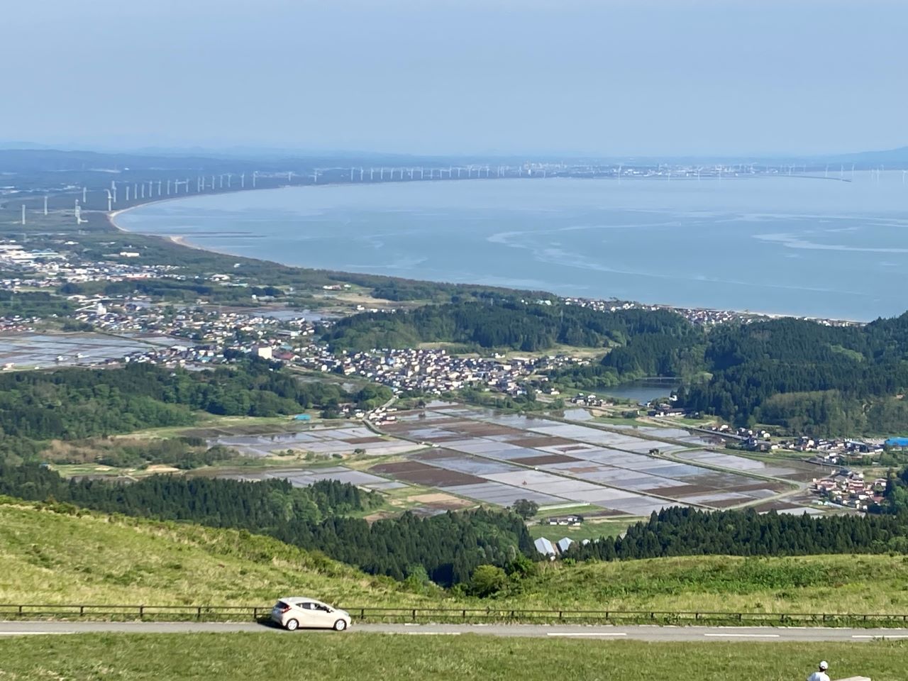 最後、寒風山からの眺めを堪能してから、秋田市内の宿に送り届けてあげました。