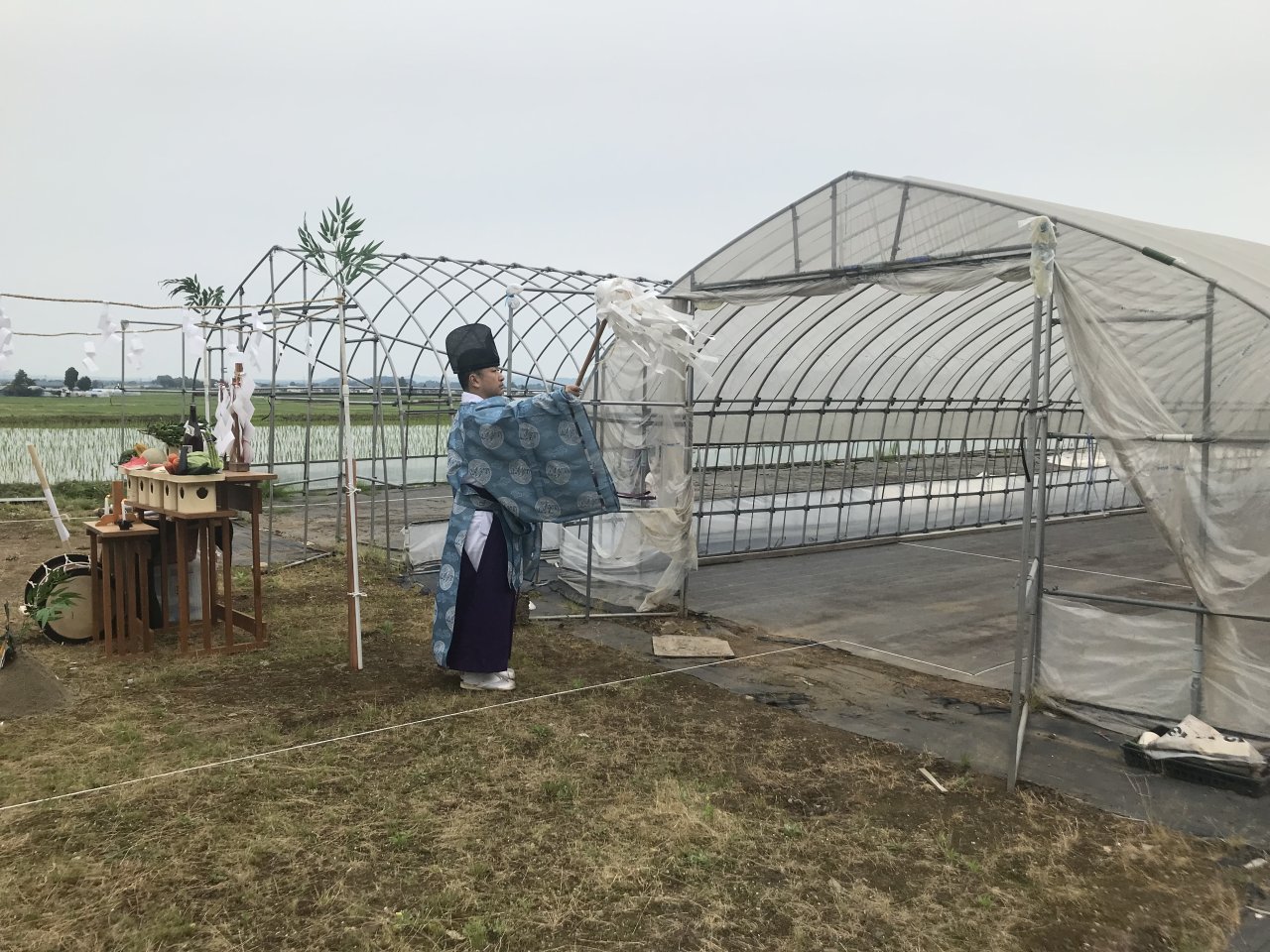 地鎮祭も神主さんによって様々。うちの地域の神主さんは太鼓をたたきました。山に響くいい音色でした。