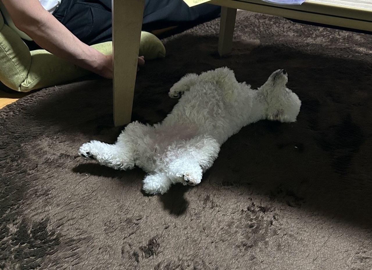 愛しのららちゃんです。初、へそ天で眠りました。感動です。家族の愛を一身に受けています。