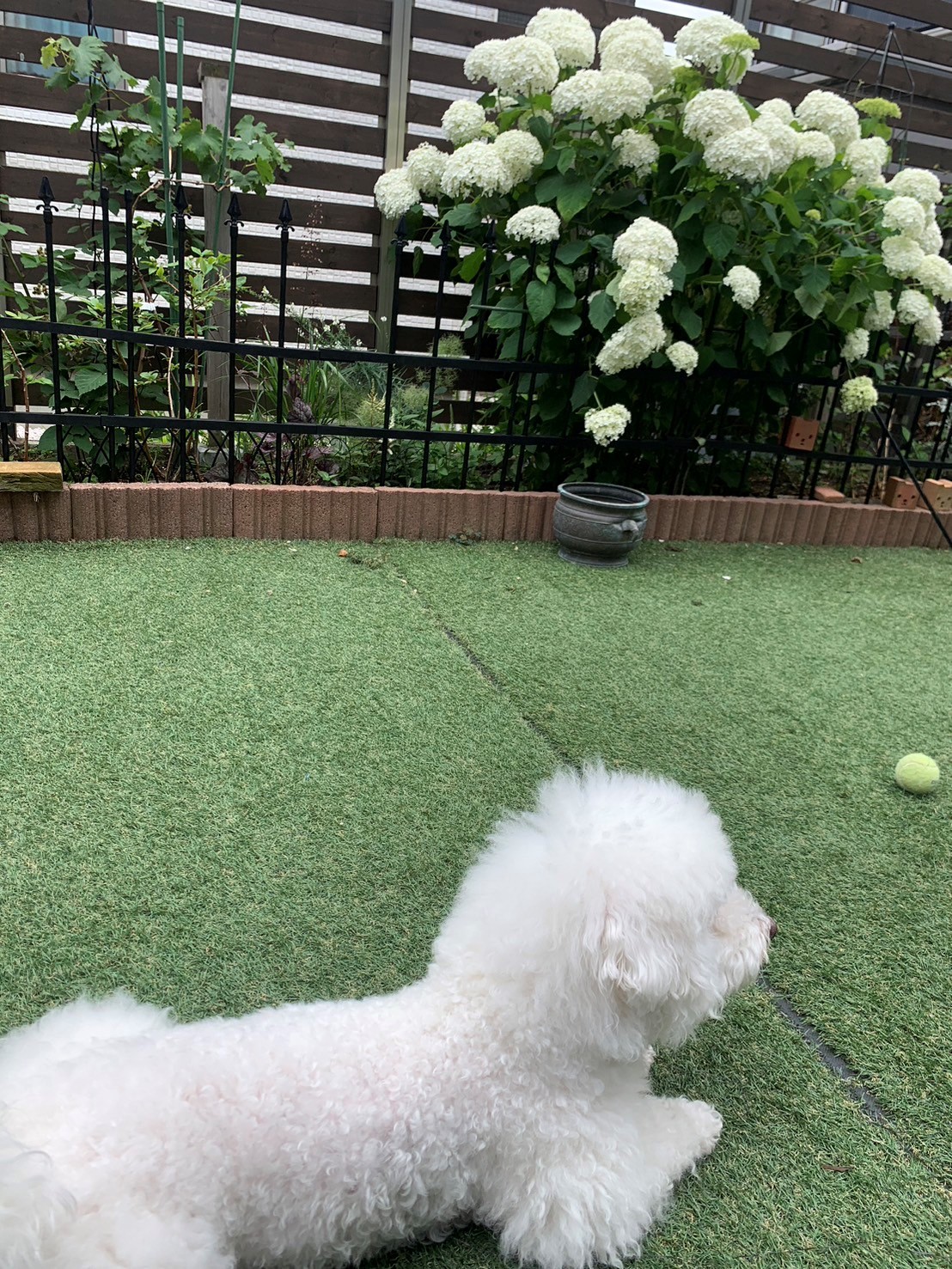 毎年この時期になるといぬとアジサイの写真を撮りたくなります。