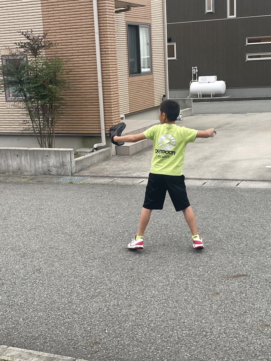 はじめのうちはルールも分からず、周りの子の真似をしているだけでしたが、今では暇さえあれば「キャッチボールしよう」「グランド行って野球しよう」というくらい野球一色になっています。