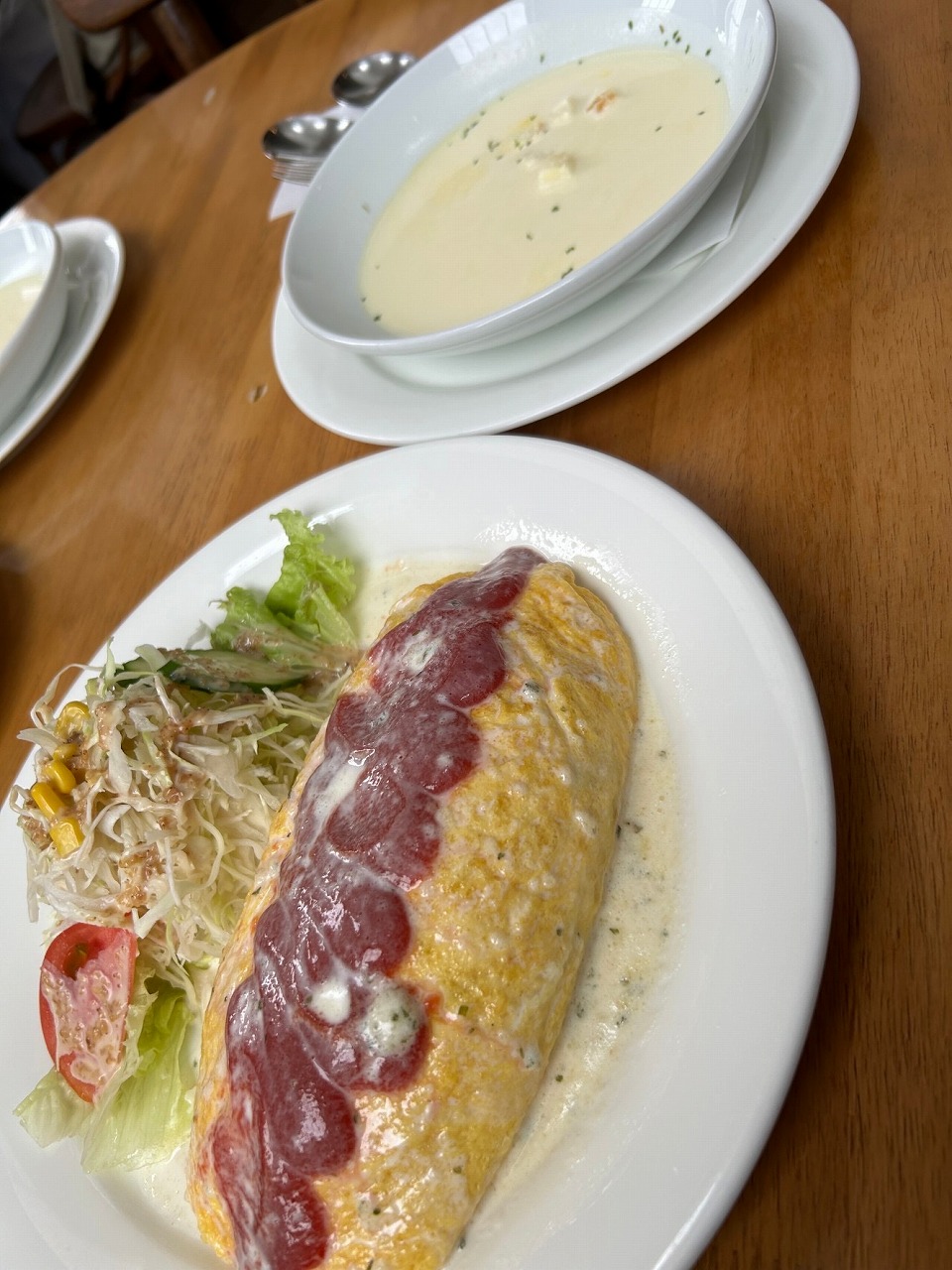 オムライスはクリームオムライスとお好み焼き風オムライスがあり、