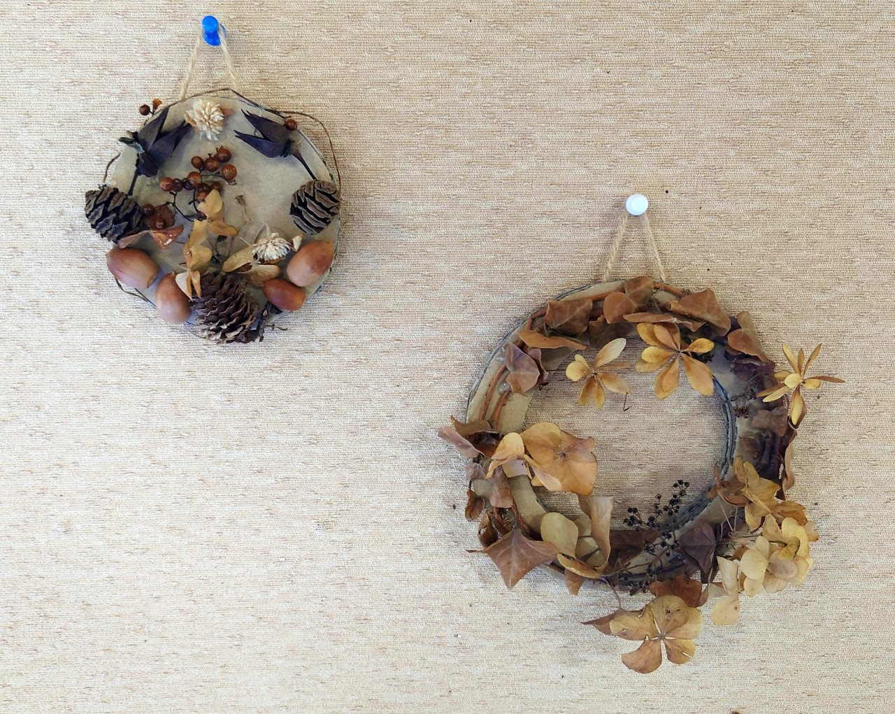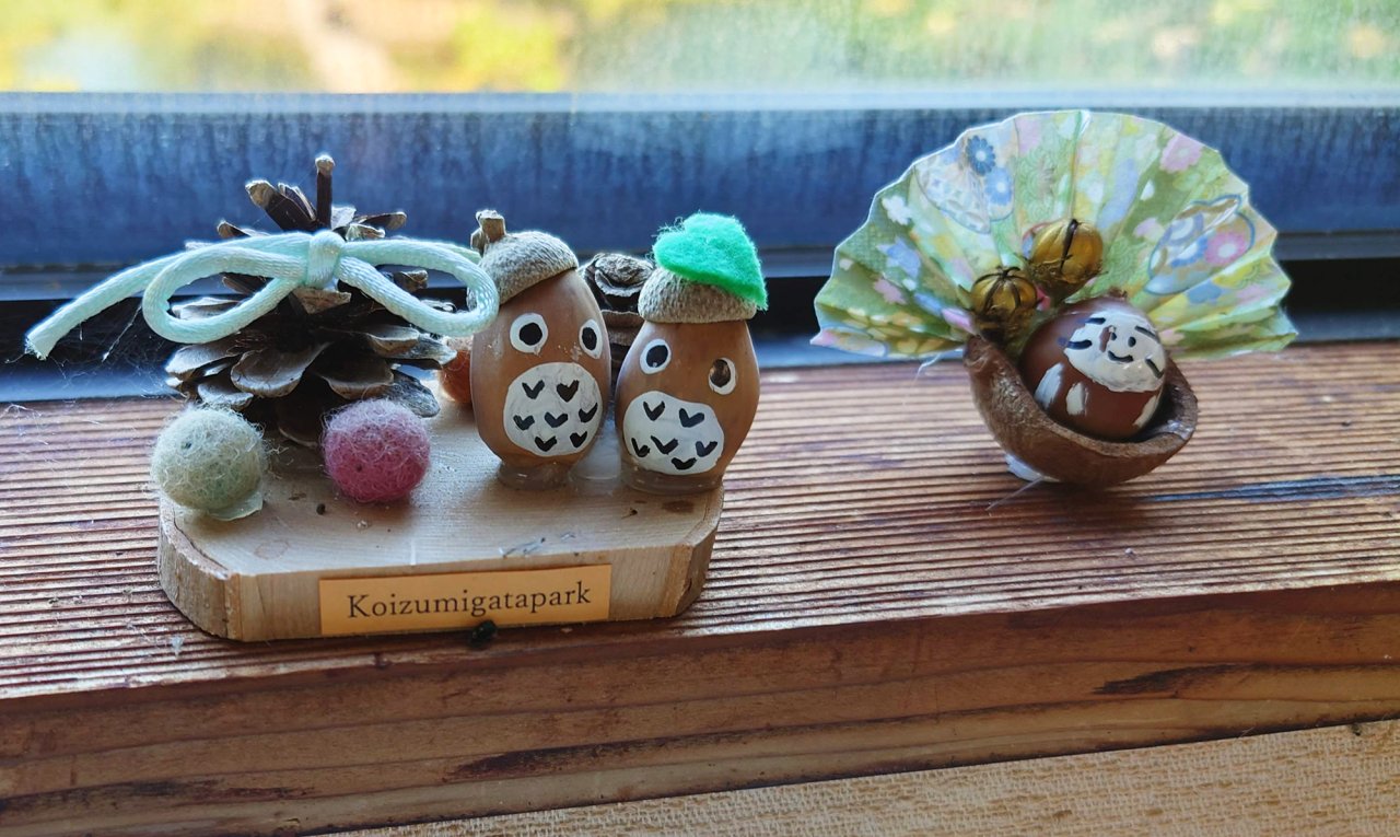 公園内に落ちているトチの実やどんぐりで休憩所内にリースなどが飾られているのもなかなか良い。