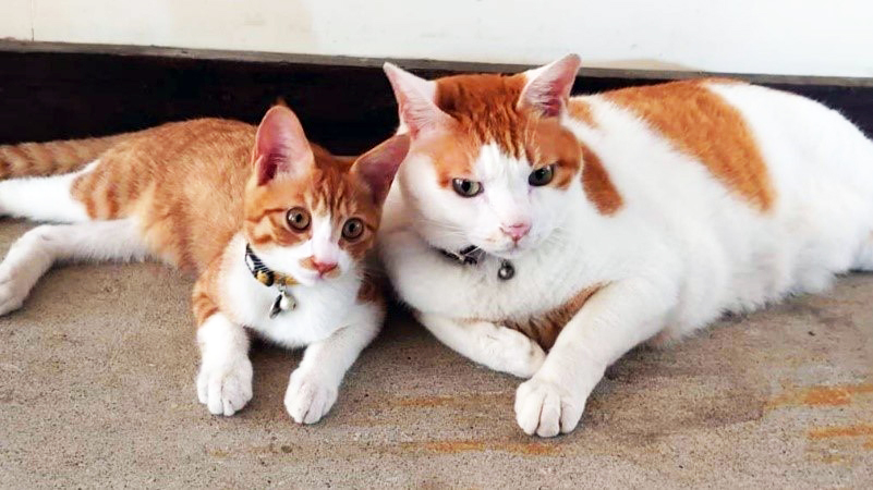 大きい茶トラと小さい茶トラのコンビが可愛すぎて悶絶しています