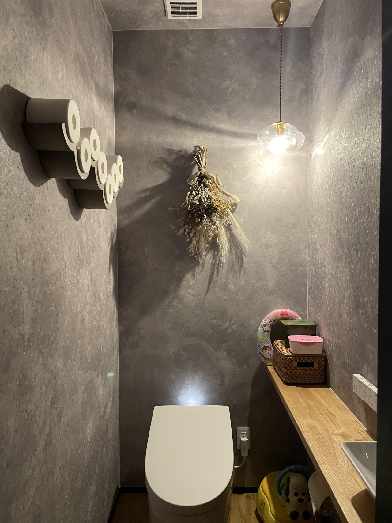トイレの中にこどもの<おまる>があっても、目線より上はオシャレになるのでお勧めです。