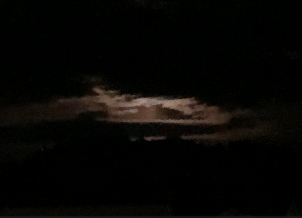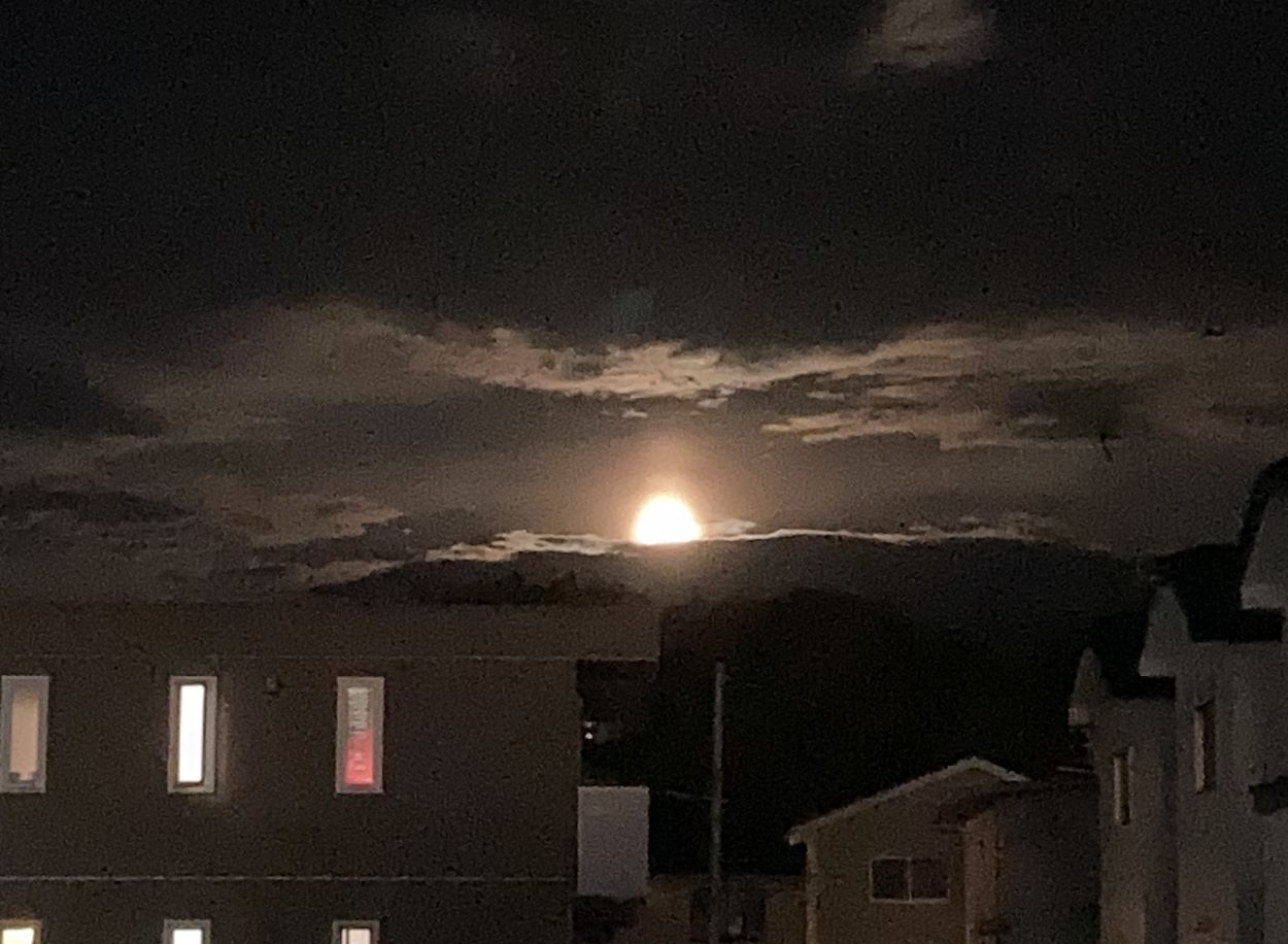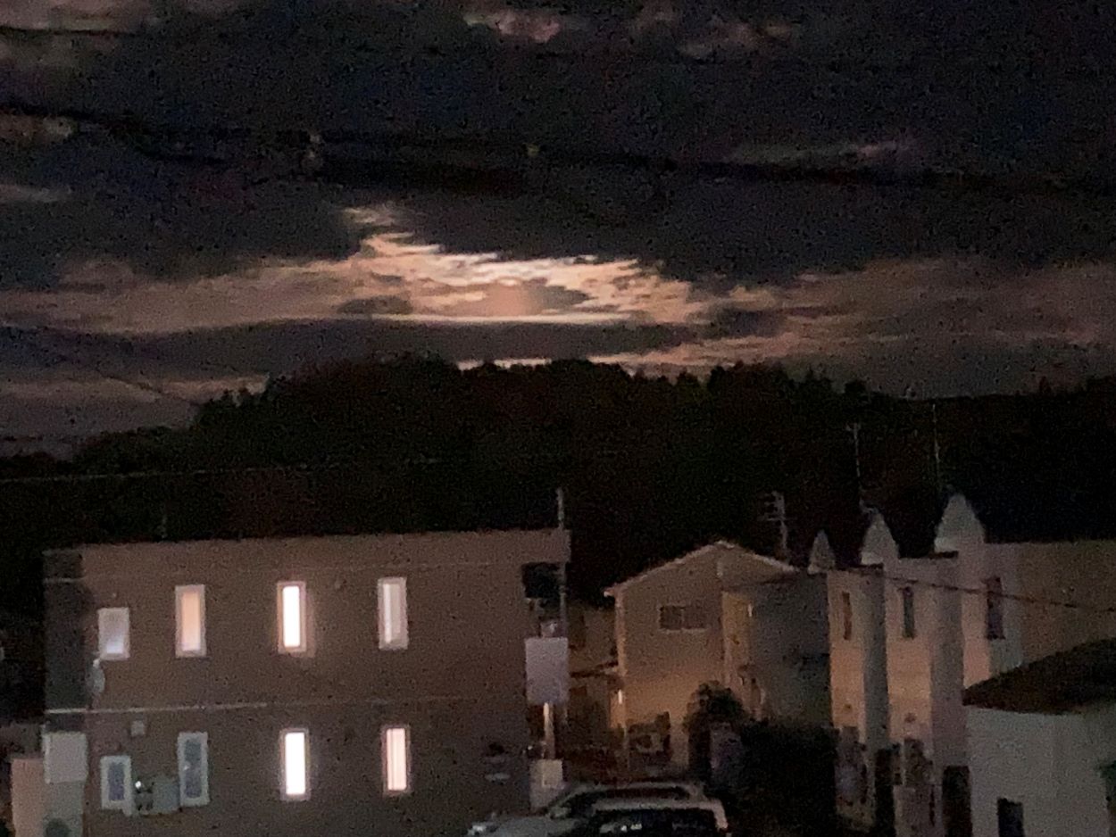 煌々と月とは思えない明るさを放ち、一気に姿を現したかと思いきや、再び分厚い雲の中へと消えて行き、また真っ暗な夜空に戻ったのでした。