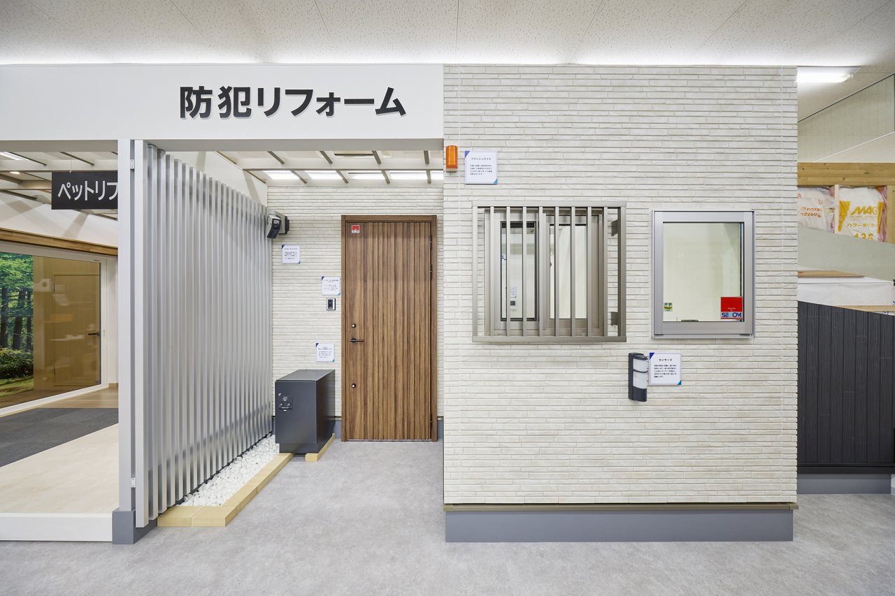 横手市赤坂にある「リフォーム情報館」では、家づくりに取り入れることができる防犯設備を実際に展示しています。