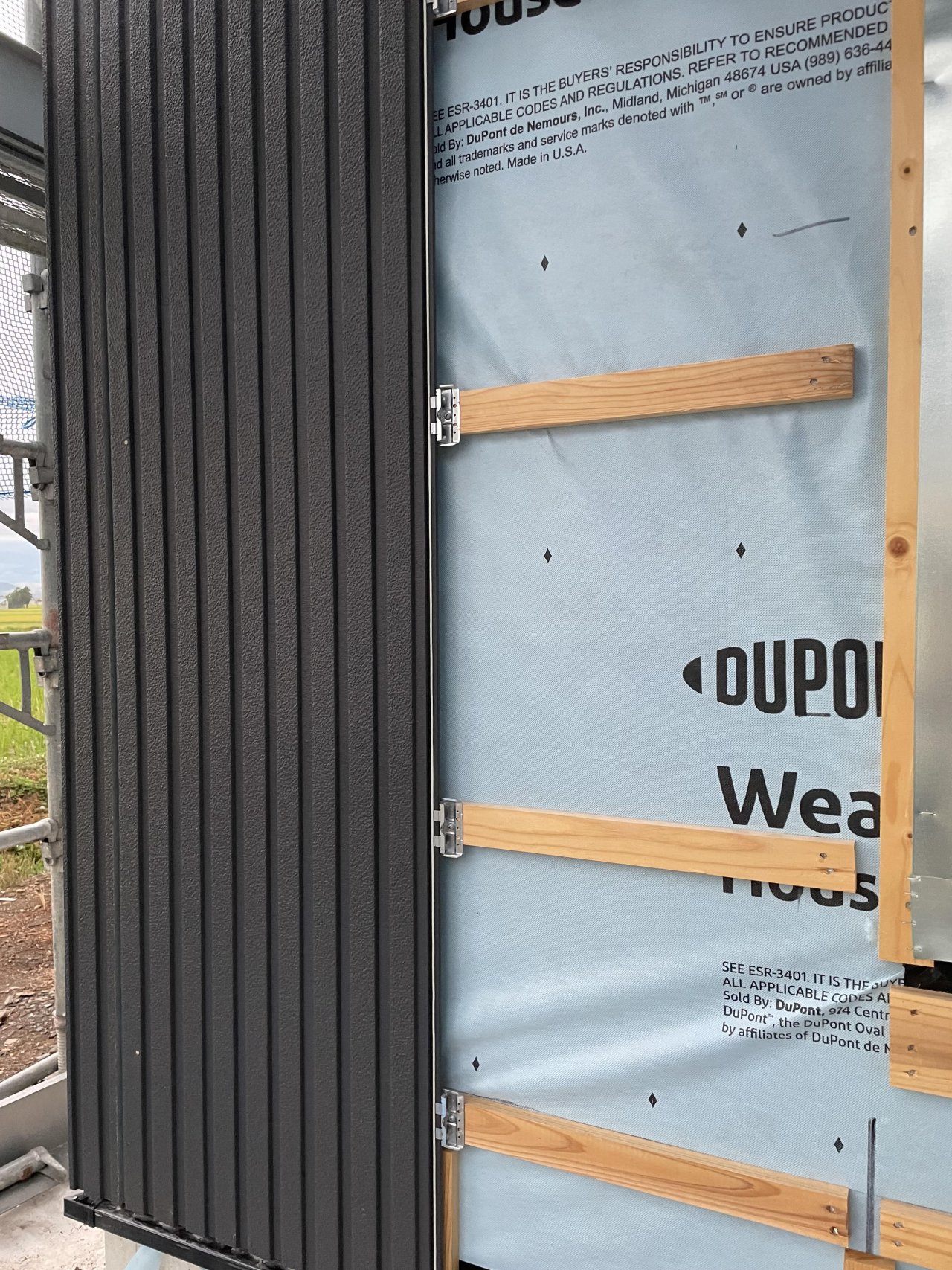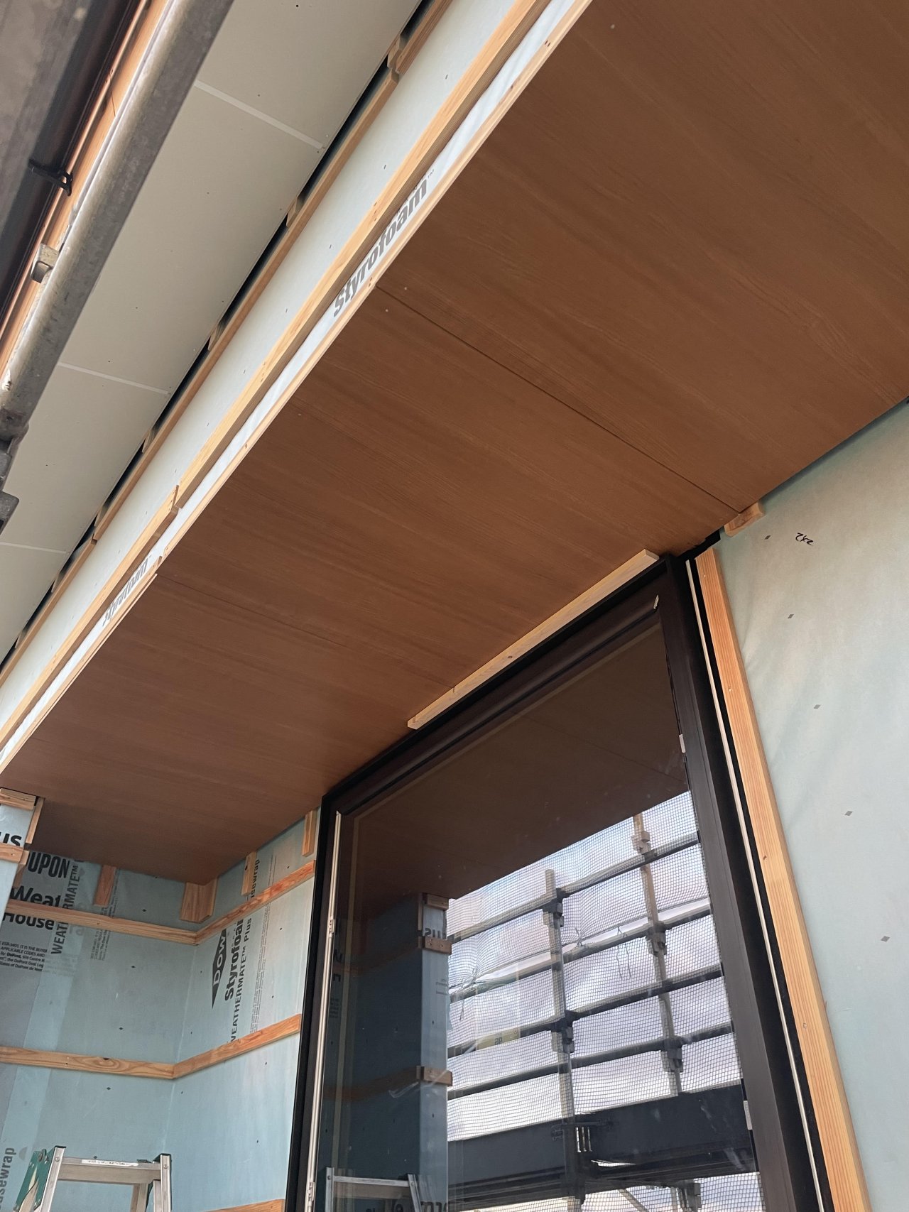 屋根の下側(軒天)とよばれる部分の一部に木目を施しました。