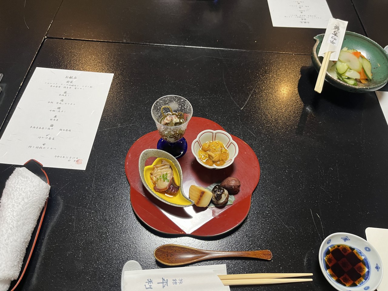 “ミーティング”と称して、おいしい和食コースのお料理をいただいてきました。