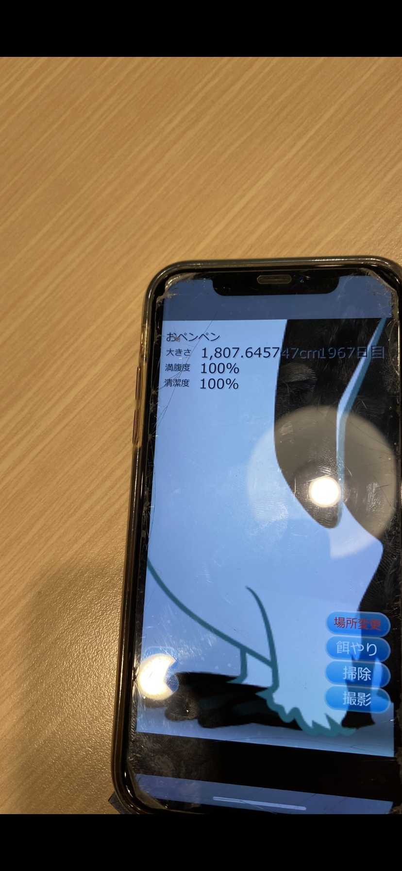 動物飼育アプリ内のペンギンを見せてもらいました。