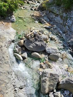 この川も涼し気ですが、熱気を感じるお湯でさらに暑かったです・・・