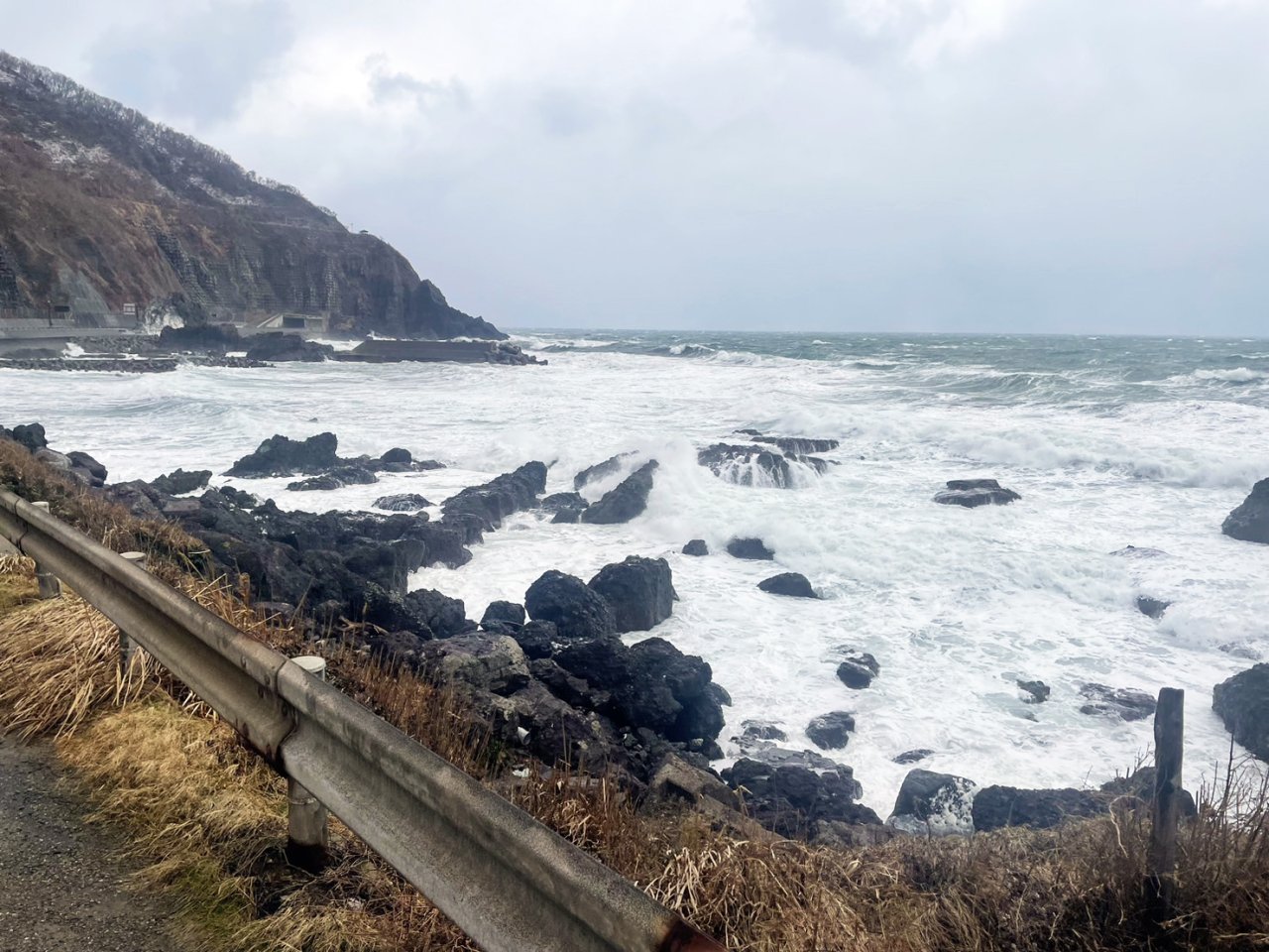 (すぐ横に海がありますが、この日は大荒れでした。)