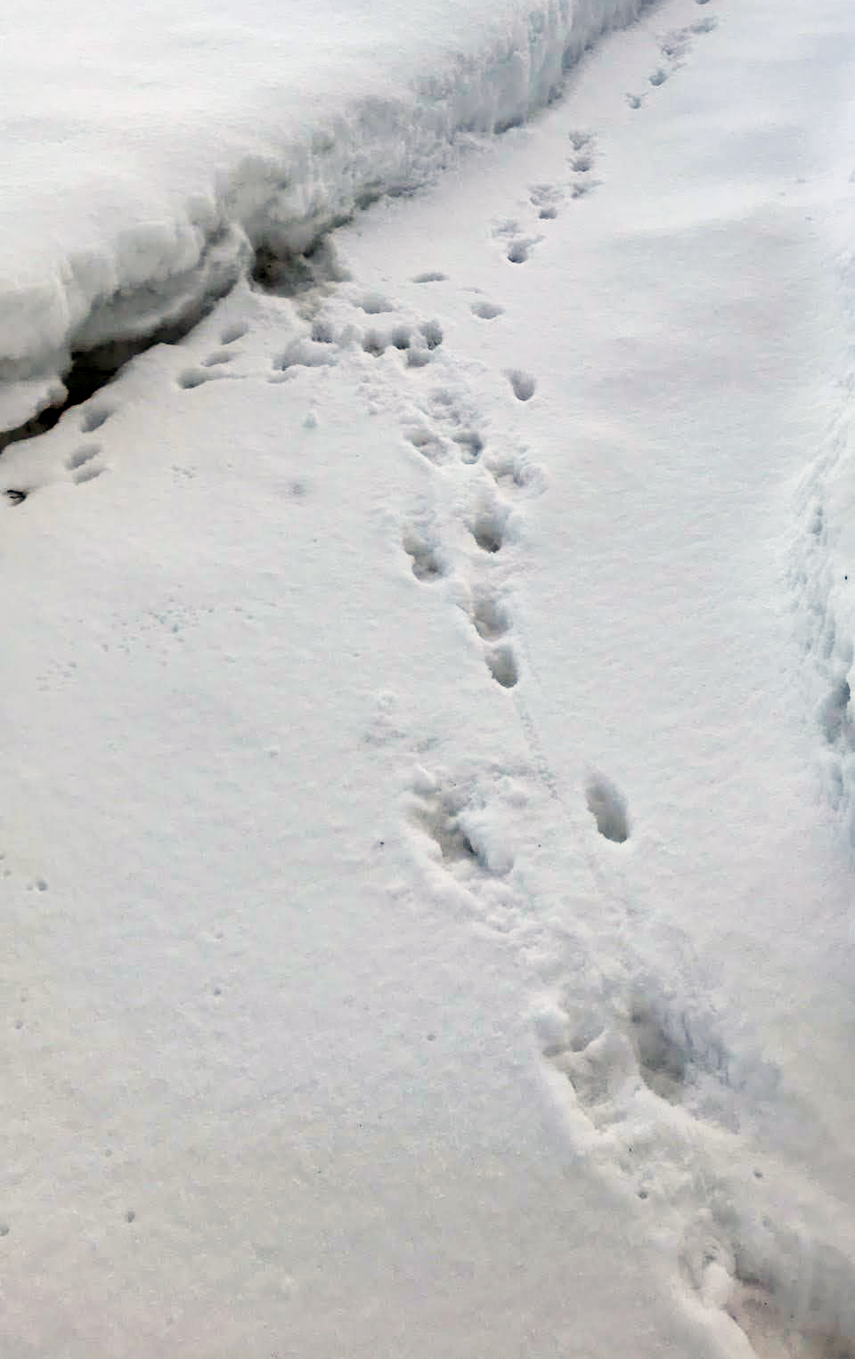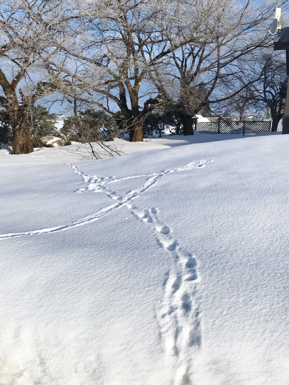 キツネか狸か、アナグマか??雪の上の足跡を見てなんとなく気持ちがほっこりしました。