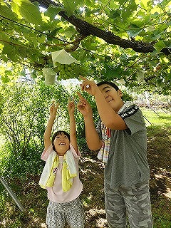 シャインマスカットは1組1房まででしたが、一番大きいのを子供たちが