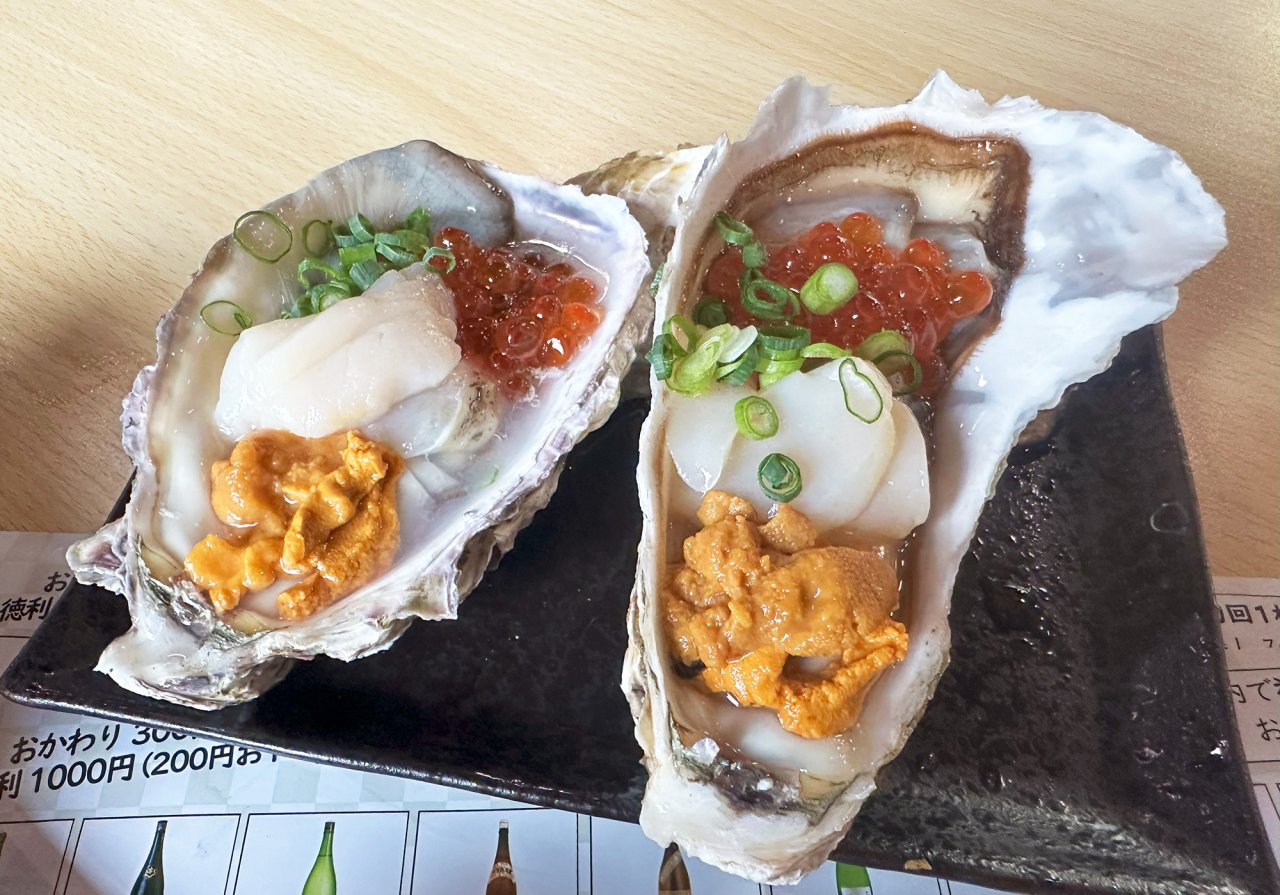痛風盛りは見ての通り、いくらとうにとほたてが乗った牡蠣で唯一映える写真が撮れたものです笑。