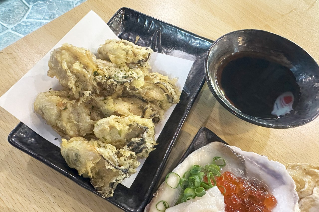 生牡蠣、焼き牡蠣、牡蠣のばくだんフライ、牡蠣スープなど様々な牡蠣料理がある中、特によかったのが「痛風盛り」と「牡蠣の天ぷら」でした。