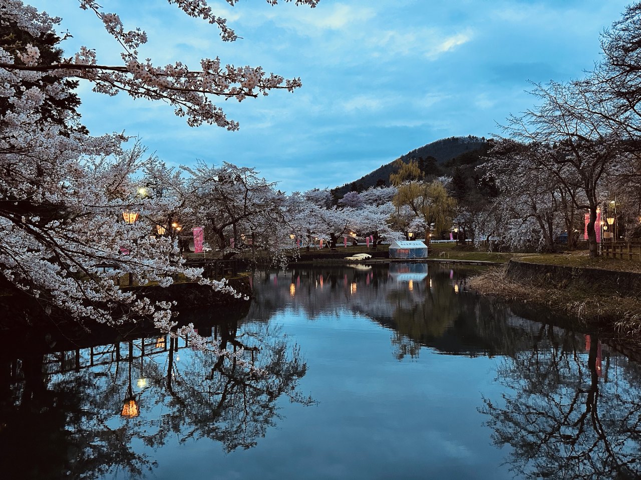今年の真人公園はライティングが少なくなっていて、池に映る桜が幻想的に撮れました。