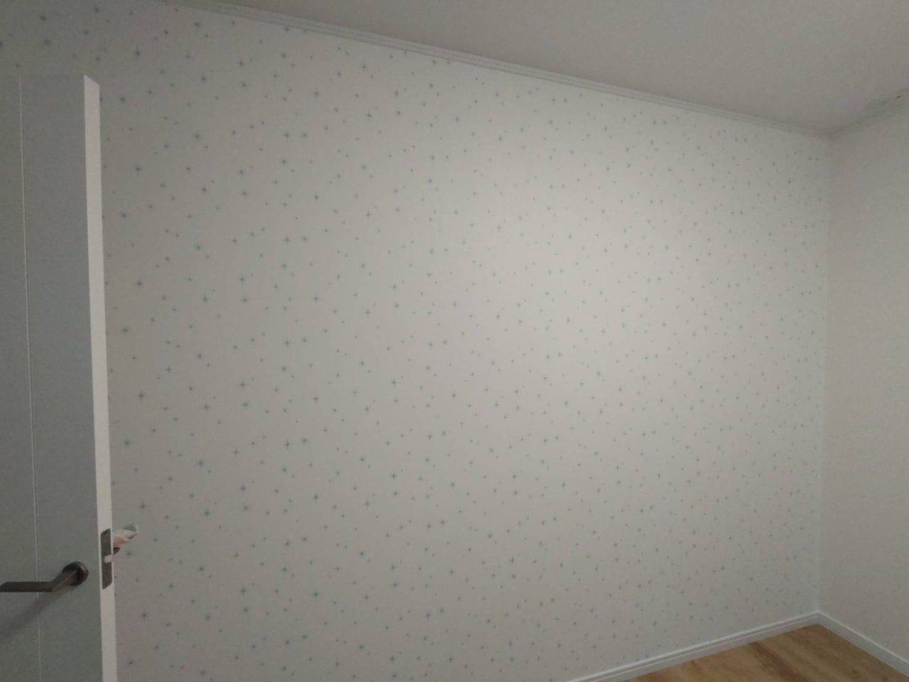 子供たちが選んだ壁紙でまずは片側のお部屋が完成!