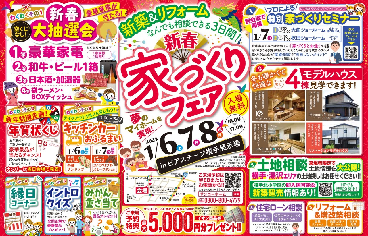 1/6(土)~8(祝)の3日間もピアステージ横手展示場にて【新春家づくりフェア】を開催します!
