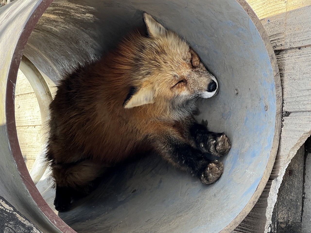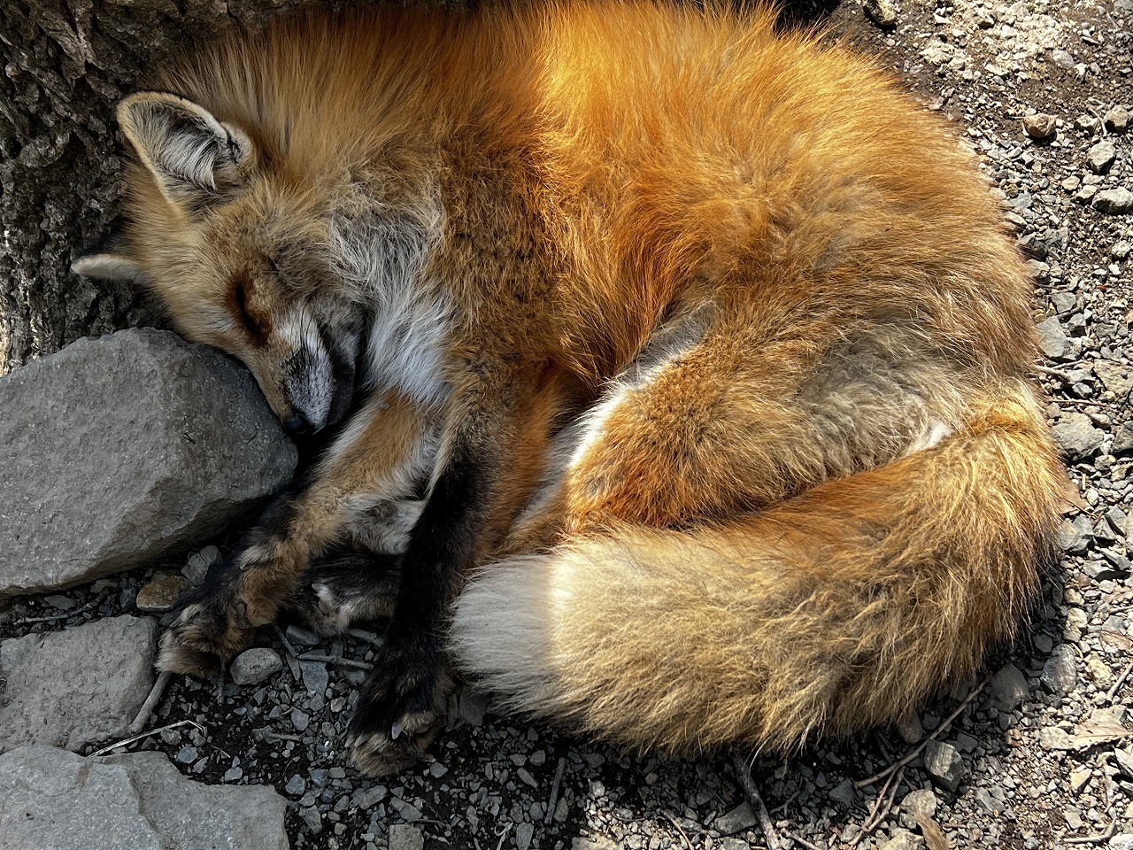 たまに起きているキツネが横を普通に通り過ぎるのは、最初緊張感がありましたが