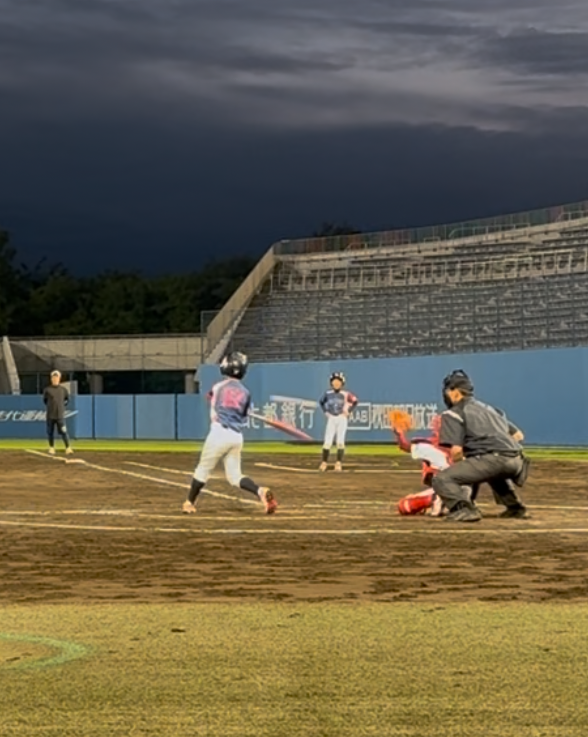 小学生なのに、ここでプレーできるなんて羨ましい。しかもナイターで。