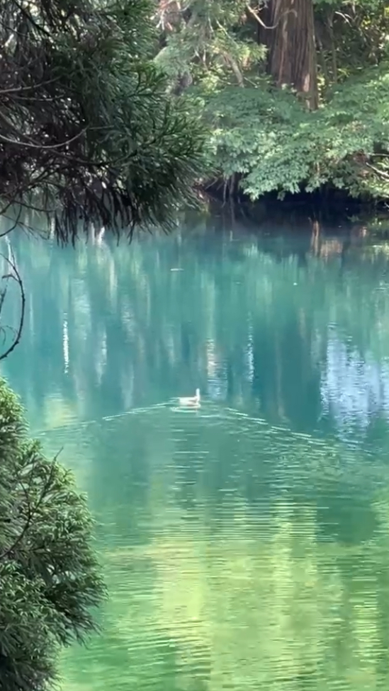 さらに、神社の前を歩いているときには、池の中を泳ぐ白蛇にも出会い、「何かいいことが起こるかも?」と嬉しくなり、思わず写真を撮ってしまいました。