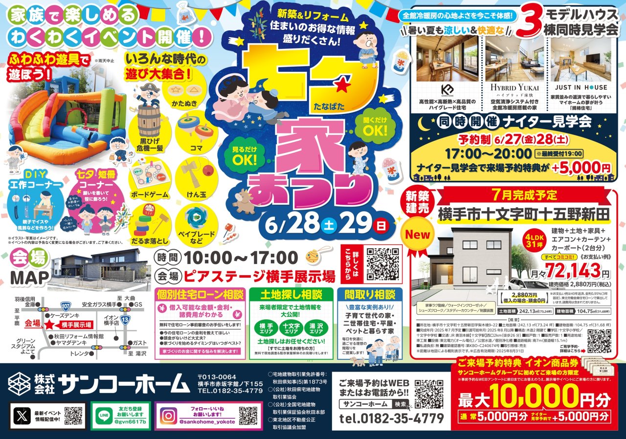 6/28(土)~29(日)の2日間は、横手展示場にて『七夕家まつり』を開催します!