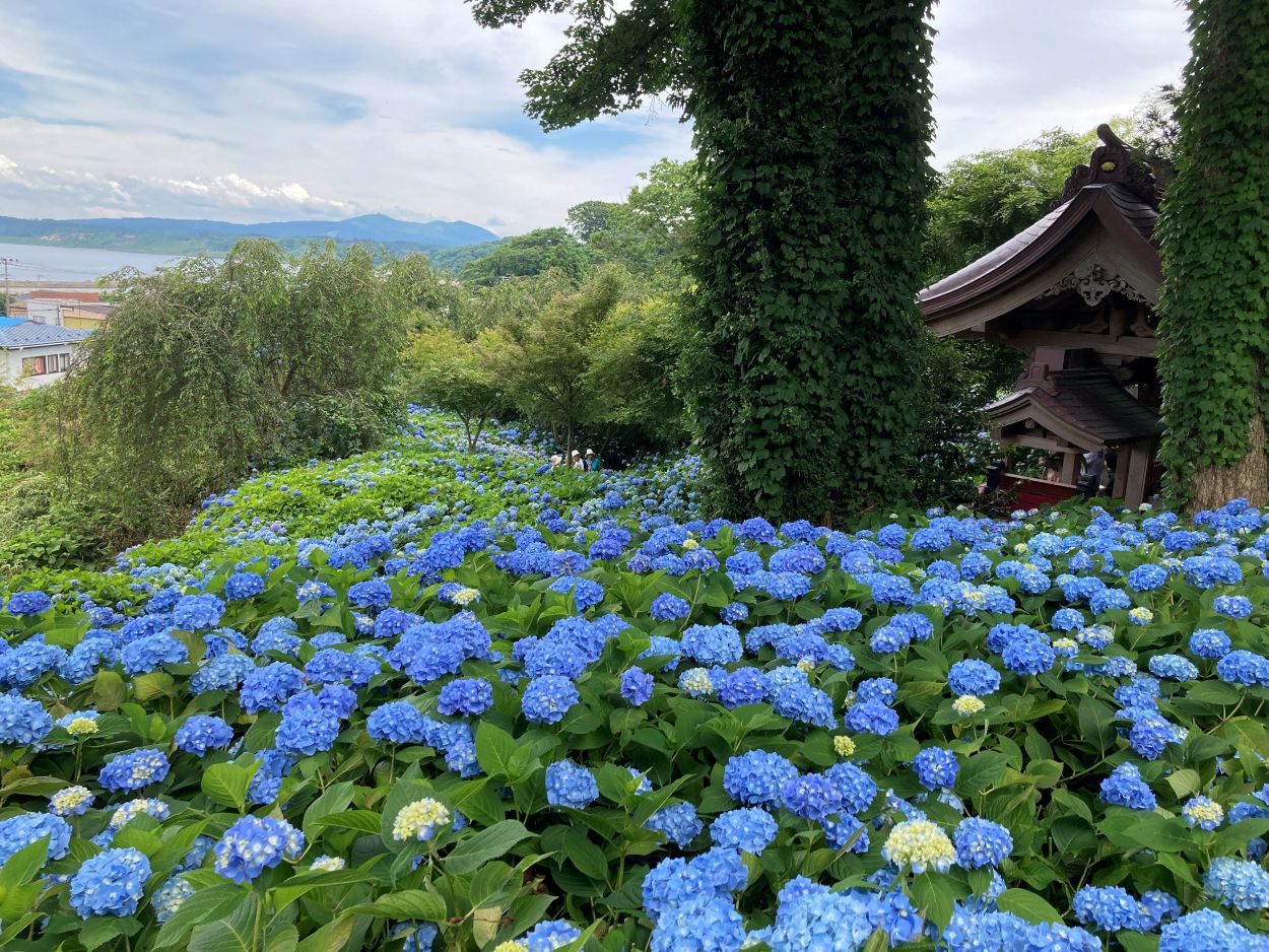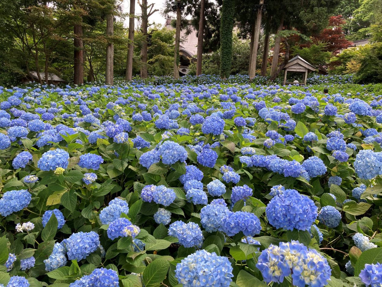 入口で拝観料を払うと斜面一面に広がる青色の紫陽花。圧巻です。