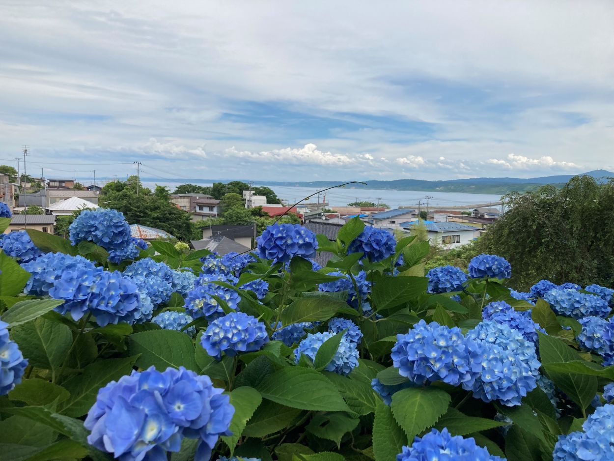 そこからは紫陽花越しに北浦の町と海が一望でき、振り返れば延々と連なる紫陽花の海。
