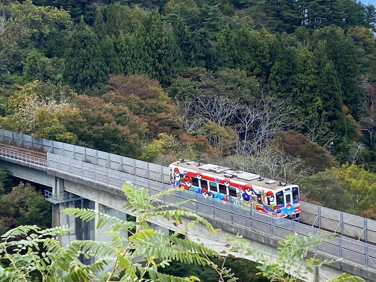 先日、岩手に遊びに行ったのですが、なんとポケモンの電車が走っていました!
