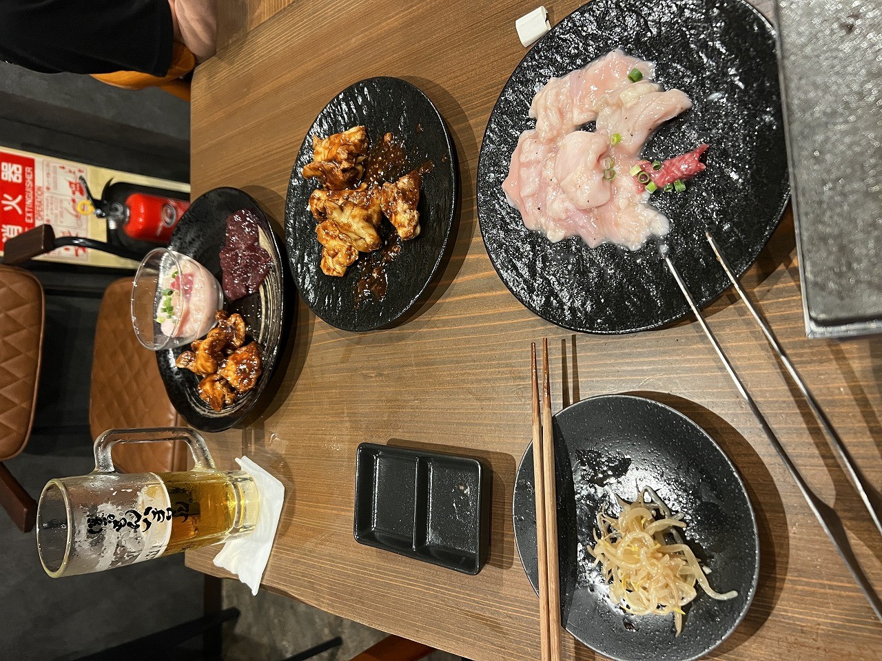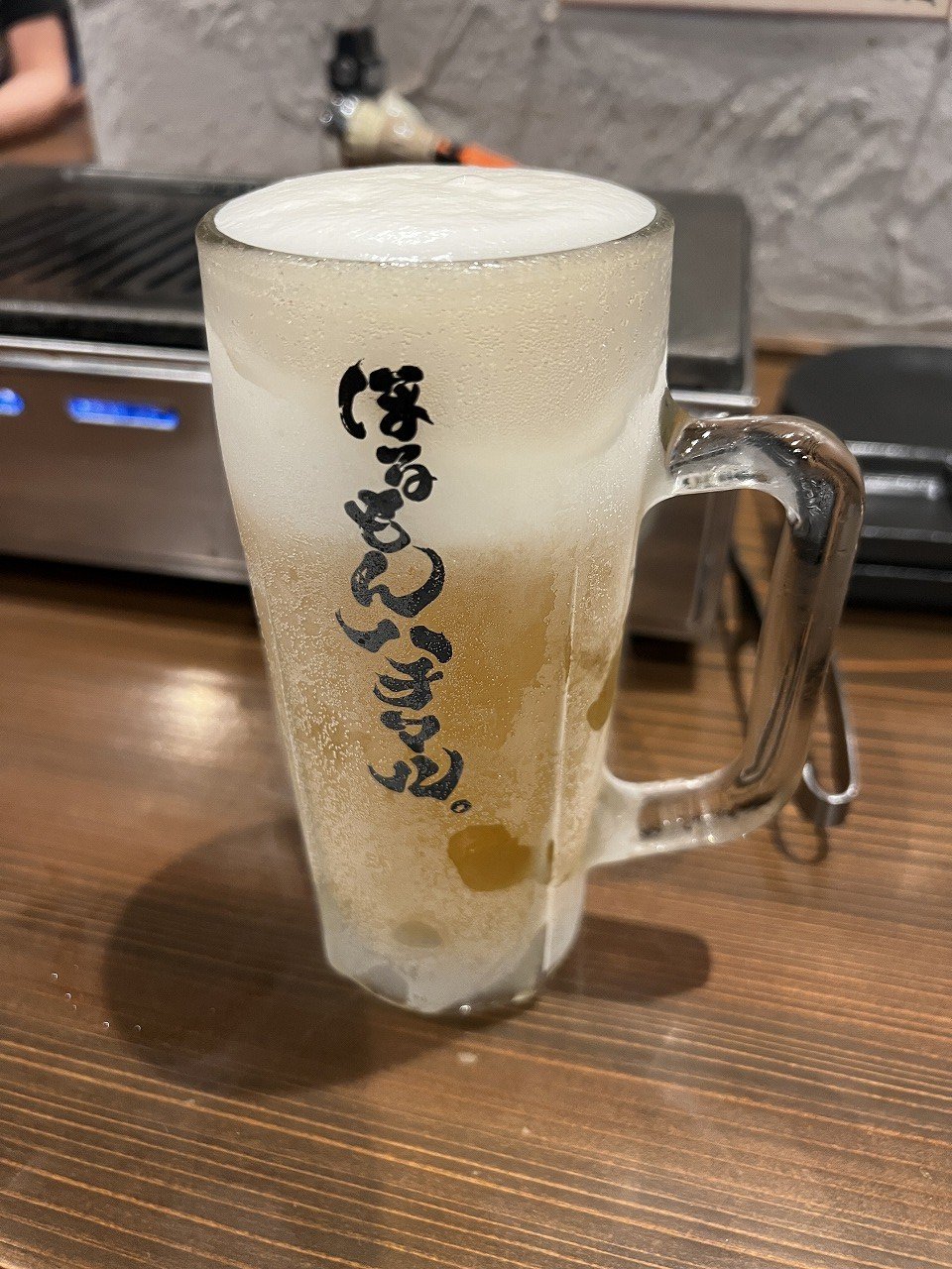 冷えたビールとホルモン最高過ぎます。ビールが進む進む。