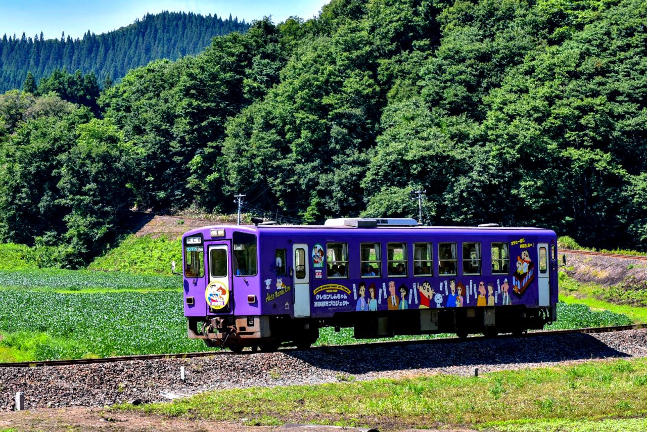 特別ラッピング車両や田んぼアートでクレヨンしんちゃんを見ることが出来ます。