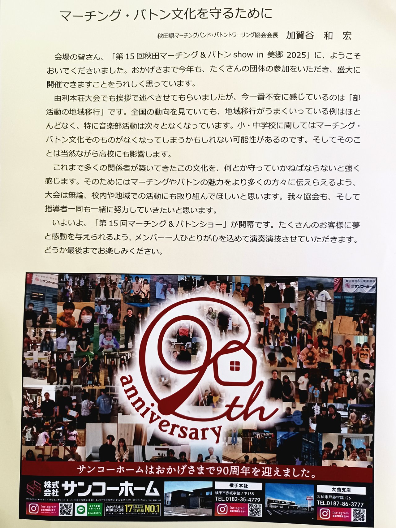 そして、マーチングSHOWのパンフレットを見ると、なんと弊社サンコーホームがスポンサーではありませんか!