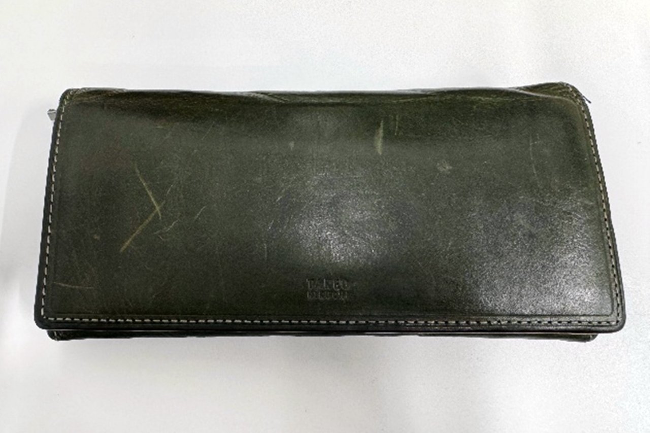 タケオキクチの財布は、天然皮革を使用しているため、色落ちや色移りなどの経年変化を楽しめるものとなっております。