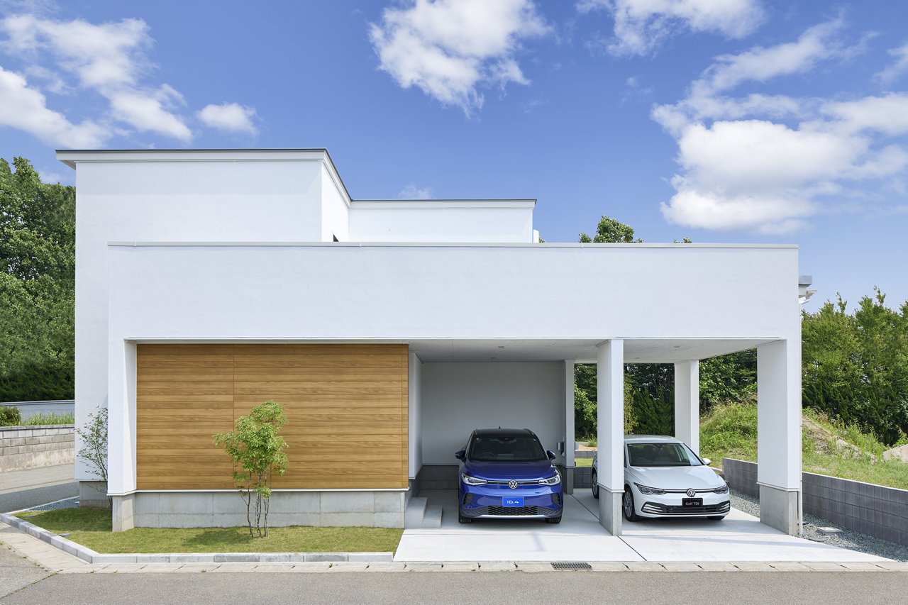 明るさを取り入れたオープンガレージのある家