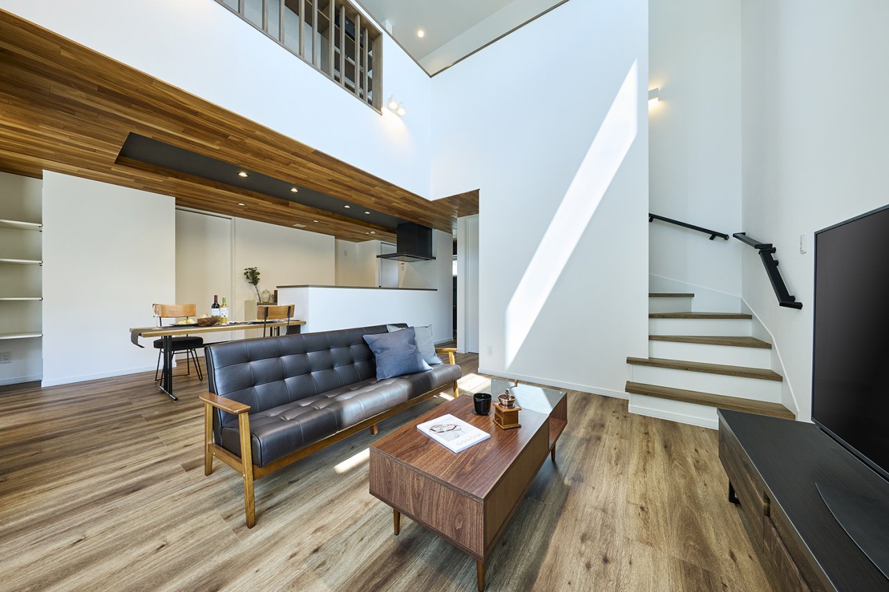 「開放的な吹き抜けと回遊家事ラク動線のある家」