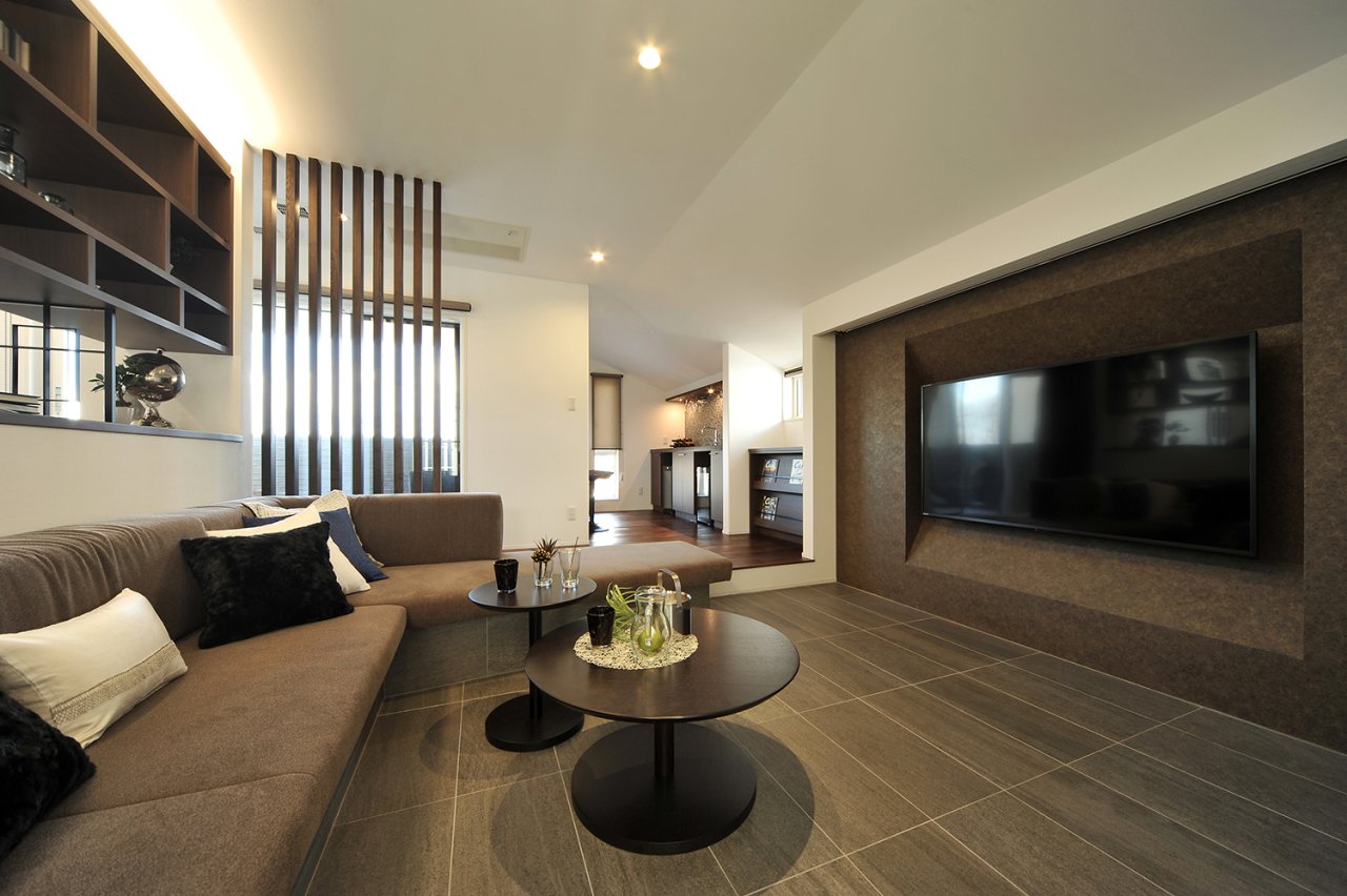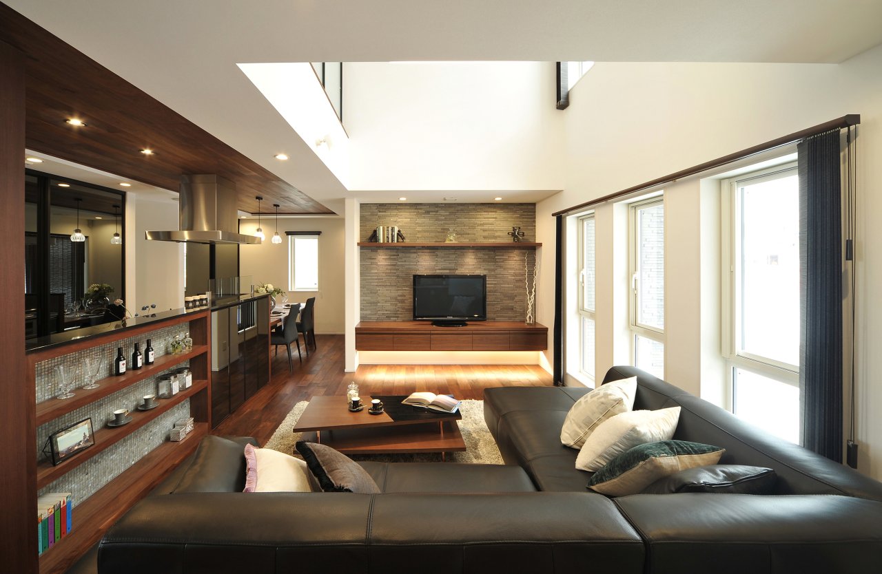 ◎迫力のある大きな吹き抜けが開放的な1階リビング空間